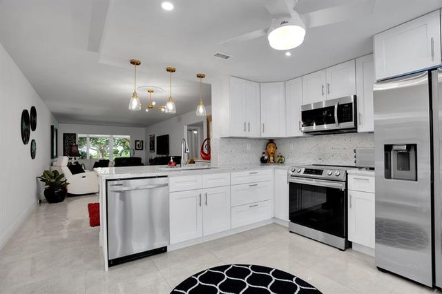 Discover your ideal ground-floor condo, complete with high-impact hurricane windows and panoramic sliding doors that lead to a private patio equipped with motorized window treatments.