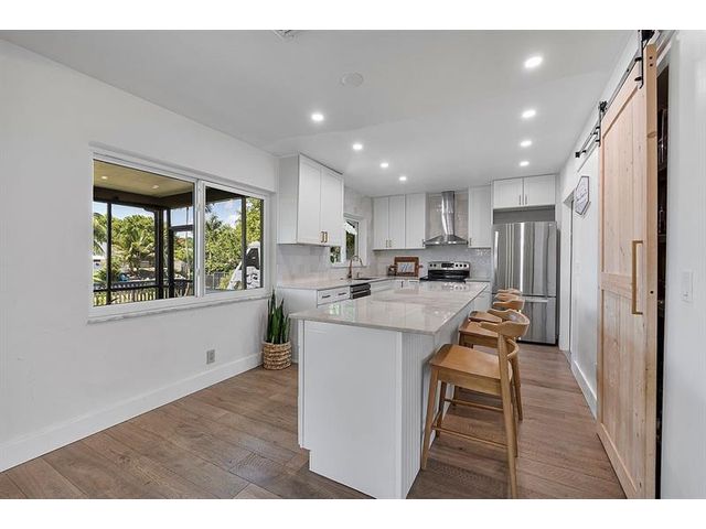 Fully remodeled 2-bedroom, 2-bathroom home in Golfview Harbour boasts a new kitchen with Quartzite countertops and an island, perfect for entertaining. The home features new organic hardwood floors from Italy throughout. Renovated bathrooms with new plumbing. Enjoy complete hurricane protection with high-impact windows throughout. A new RainSoft water filtration system serves the entire house, and the automatic sprinkler system draws water from the lake. Outdoor space is ideal for entertaining, with a open patio and a spacious backyard enclosed by a new wooden fence. The property sits on 80 feet of waterfront, connecting to Lake Ida/Eden/Osborne, perfect for boating, fishing, and paddleboarding. Golf carts, RVs, boats, and water toys are welcome in this close-knit, no-HOA community.