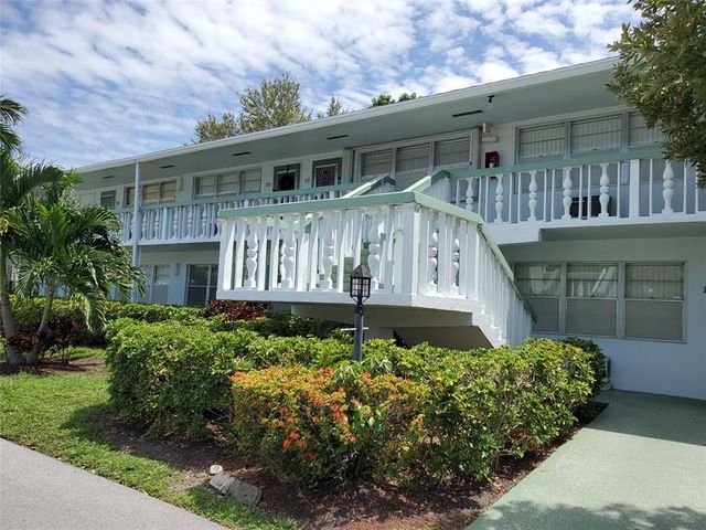 Must see 2nd fl, 1 bedroom 1 bathroom condo with canal view in back. Move in ready, furniture negotiable. Well maintained property, new A/C Wall unit, new vinyl flooring, new roof and exterior painted. Come see your next home in the desirable Century Village East at the Lyndhurst E building. 55+ Century Village East has all the amenities one could enjoy. Clubhouse, theater, Pool area, restaurant, fitness center, 2 Lyndhurst pools, tennis, card rooms, pickle ball. Courtesy shuttle buses to local supermarkets, beaches, shopping and more. Unit is vacant and easy to show. Min. Credit score of 650. Motivated seller!! 3 Separate monthly dues required- East Coast Maintenance $250, CVE Master Management $172, CVE GenClub Recreation $110-Total monthly payment due $532/per month. No Renting.