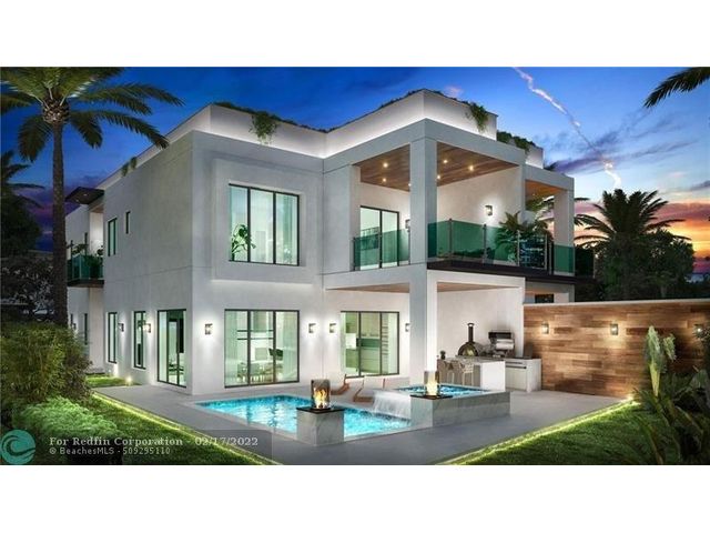 Just 3 blocks from the beach, this luxurious villa offers an unparalleled vacation-like lifestyle. Private backyard includes pool with hot tub Outdoor Fireplace, Summer Kitchen. Boat Dock Included, offering deepwater access. Custom Kitchen Features top-of-the-line appliances Gas Cooktop, 42in refrigerator hidden walk-in pantry & wine bar. Cabinetry imported from Germany enhances elegance & functionality. Oversized master bedroom boasts private balcony, & luxurious bathroom features including Rain Dome shower, slipper tub,dual vanities. Private Elevator adds accessibility throughout the villa. Private Driveway accommodates 4 vehicles, garage can house 4 cars thanks to a car lift system. Make this dream home your reality and indulge in a lifestyle that others only aspire to.
