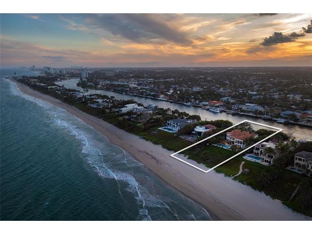Located on the prestigious Hillsboro Mile, this home is situated on 220 total feet of intracoastal and oceanfront. This exquisitely built transitional home has 7 bedrooms and 9.2 baths with breathtaking views from every part of the home. Enjoy resort-style living with private salt water pool and spa, outdoor kitchen, exercise room, media room and wine room. This Estate is on over 32585 Sq ft. has a gated entry to the property and a 5 car garage. Incredible sunrises and sunsets you will never want to leave this tropical paradise.