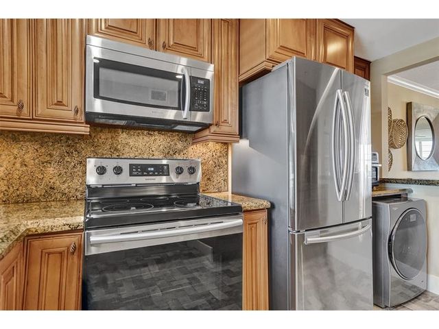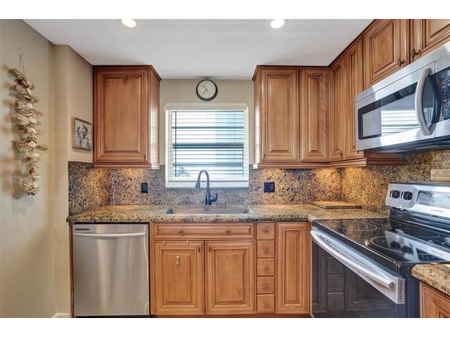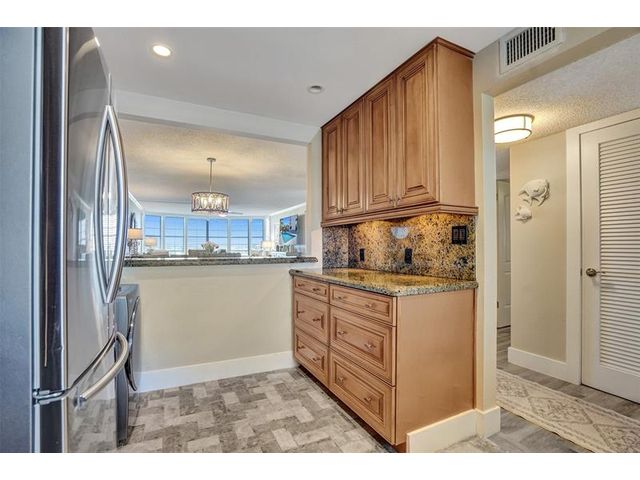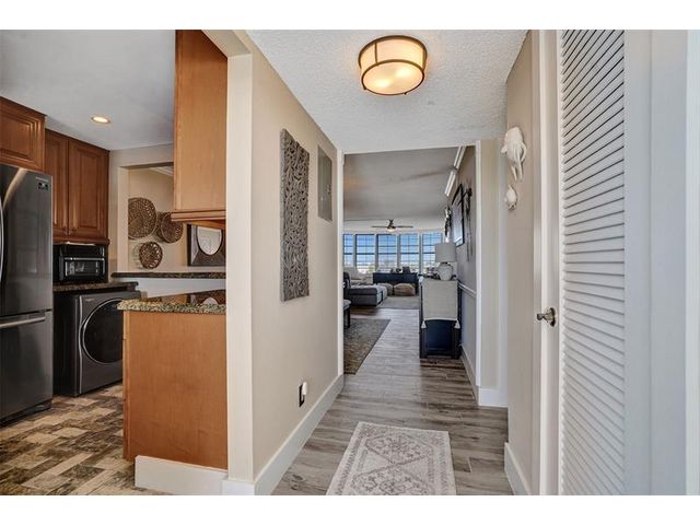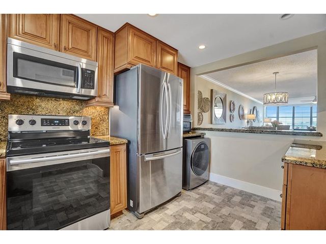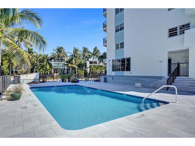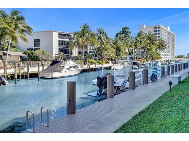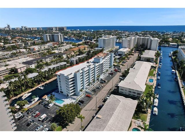 Stunning, luxurious waterfront living in this 2BR/2BA condo with 1450 SF of modern space. This turn-key unit features a renovated kitchen with granite countertops, stainless steel appliances, and custom cabinetry. New elegant plank ceramic floors, new hurricane compliant windows/doors, plantation shutters, and newly painted! Spacious master and second bedroom feature large walk in closets. Washer/dryer in unit! One parking space in the covered garage. The secure building finished its concrete restoration and almost everything is new, including modernized elevators, new dock, new roof, seawall updates, and a heated pool that gets sun-all day. Pet-friendly and just steps from top dining, shopping, nightlife, and minutes from Lauderdale- by-the-Sea Beach. Low HOA’s. Parking space 41