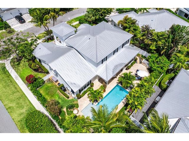 This stunning Key West-style residence captures the essence of coastal living with a perfect balance of formal and relaxed influences. From the moment you arrive with its inviting curb appeal—with its charming front door, shutters, & metal roof you know this home is special. Offerings: Den/Office, Playroom/Gym, Soaring ceilings, Walls of impact windows & Glass doors, 1st Floor primary suite, Sunlit open living spaces, Crisp white island kitchen with premium appliances including a gas range, Whole house water-filtration system (removes fluoride), Wood flooring, Balcony & A seamless indoor-outdoor flow. The tropical backyard features a heated & chilled pool & lush landscaping. The magic begins when the sun sets with landscape lighting. Short stroll to dining, shopping & entertainment.