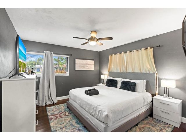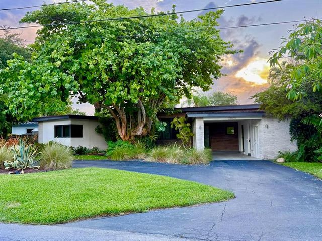 Discover your Mid Century "turn key" dream home in this stunning contemporary waterfront property, currently operated as a permitted Airbnb! This beautifully designed two-bedroom, two-bath residence features exquisite travertine flooring and a modern chef's kitchen equipped with stainless steel appliances, perfect for culinary enthusiasts. Home features, newer roof, new dock, "Eurotech" impact windows and doors, along with modern smart home features and lighted accent wall, open living area, adorned with mid-century vaulted ceilings, allowing natural light to illuminate your surroundings. Home is being sold fully furnished. Bring your kayak or paddle board and enjoy touring Middle river, !! Mins to Wilton Drive and the shoppes of Wilton Manors, easy access to beaches and 95 ! --
