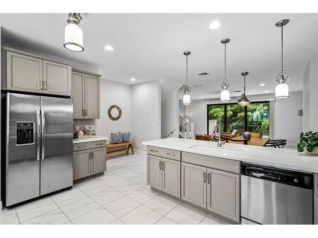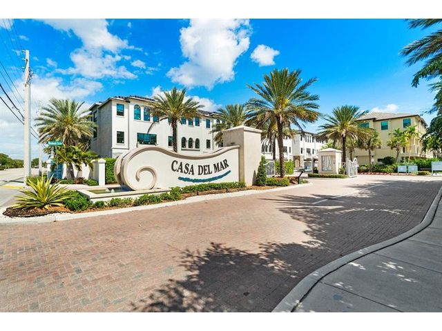 Discover the epitome of luxury living in East Boynton's exclusive Intracoastal enclave, Casa Del Mar. This elegant, tri-level townhome spans an impressive 3,294 total sq. ft. of thoughtfully designed living space, featuring 3 spacious bedrooms, 2 full/2 half baths, and a 2-car garage with additional storage. Every detail has been meticulously crafted to deliver modern comfort, style, and sophistication. Luxury living on three floors with tropical views. Step into the first floor, where a versatile bonus room with a private bathroom awaits. Ideal for a home office, guest suite, or media room, this space offers privacy and functionality to suit your lifestyle needs. The second level showcases a bright, open-concept living area with soaring ceilings and refined finishes.