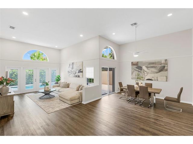 You’ll love this professionally renovated home in Ventura of Mission Bay. Enjoy preparing meals in the all new open air kitchen with granite countertops and tile backsplash stainless steel appliances and beautiful white shaker cabinetry. Discovered a bright interior with fresh paint new flooring. The primary suite offers dual walk in closets in suite bathroom with beautiful, soaking tub and separate shower. Guest bathrooms are all updated as well Guest bedrooms offer large closets and ceiling fans. Backyard offers, sparkling private pool, mature landscaping and ez to secure hurricane shutters. Low Maintenance fee includes gated community lawn care, access to Mission Bay clubhouse, which offers, large pool, private event rooms and gym membership.