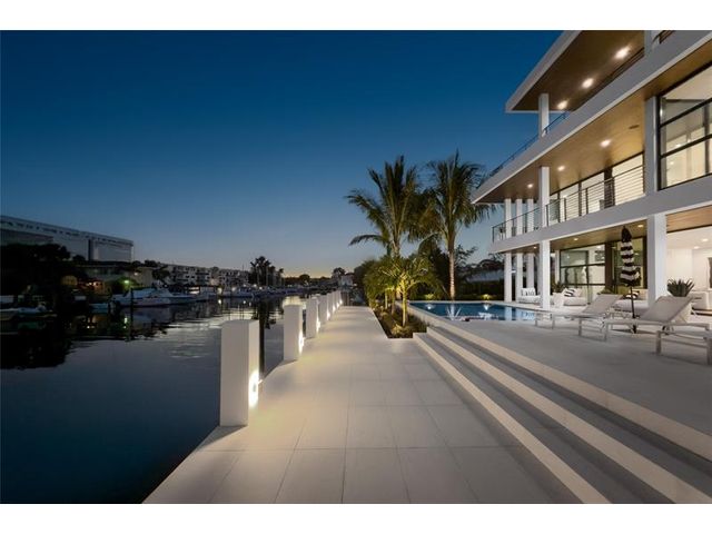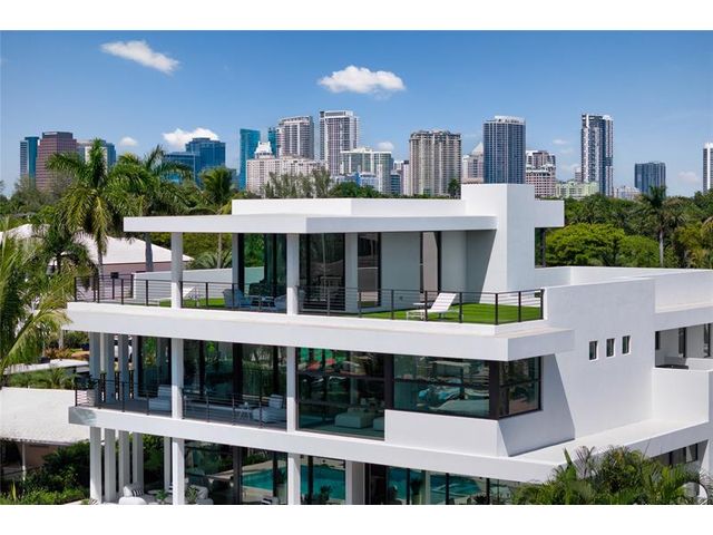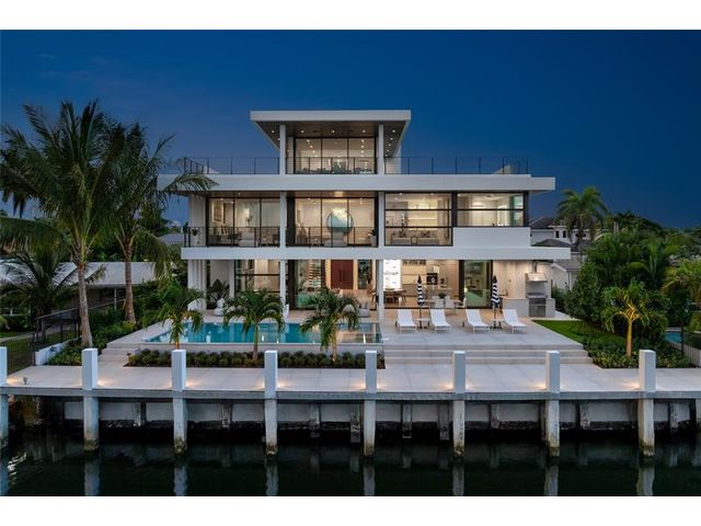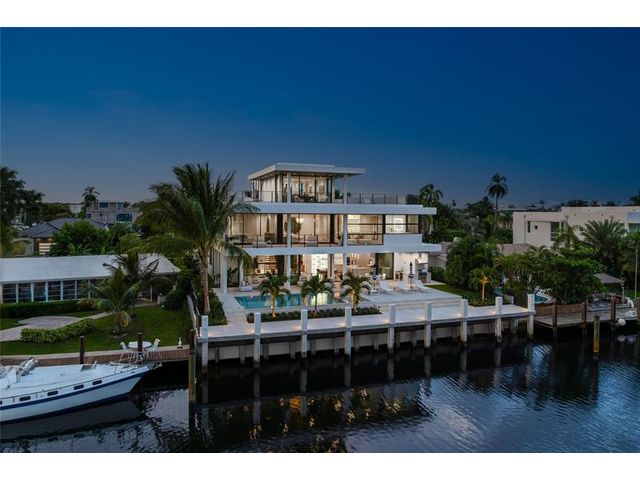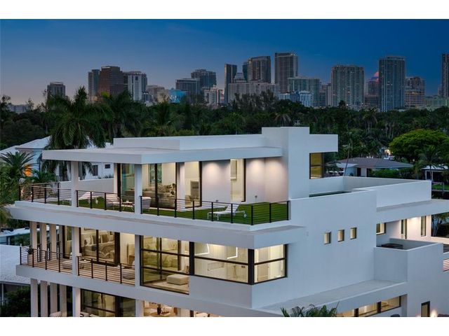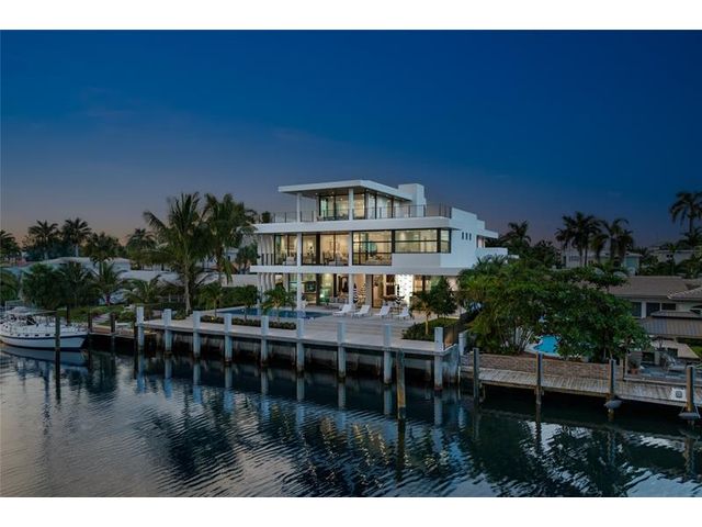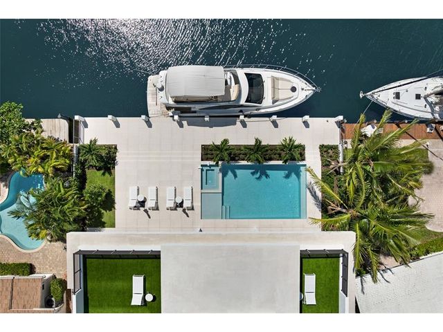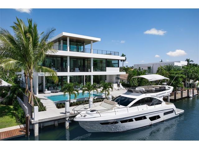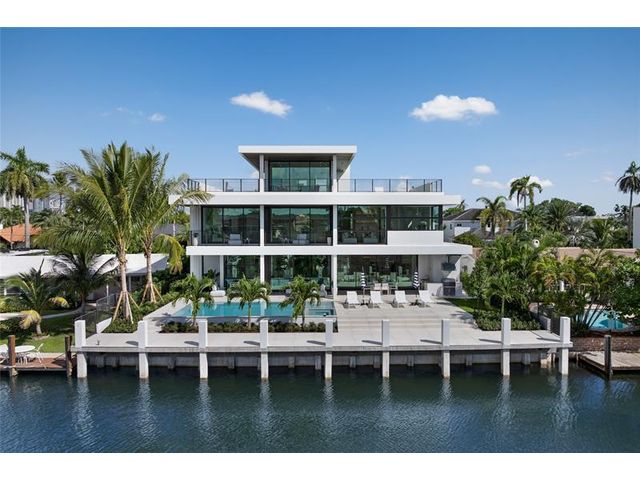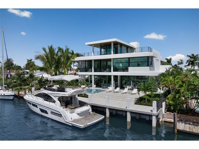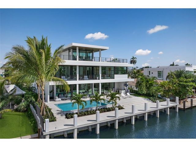 A bold statement of modern luxury, this newly completed residence offers 80 feet of deep water on a wide canal, ideal for most yachts. No fixed bridges with ocean access in minutes. Located in the exclusive enclave of Lauderdale Harbors, minutes from downtown, dining, shopping, and major airports. A soaring three-story entry with sweeping water views, five en-suite bedrooms, eight bathrooms, and a third-floor club room that can serve as a sixth bedroom or office. Highlights include an under-lit floating staircase, three-car garage with lift capacity for six cars, a chef’s kitchen featuring top-of-the-line Miele appliances and a gas stove. Enjoy indoor-outdoor living with a heated saltwater pool, spa, kitchen, outdoor shower, cabana bath, a new elevated concrete seawall and dock.