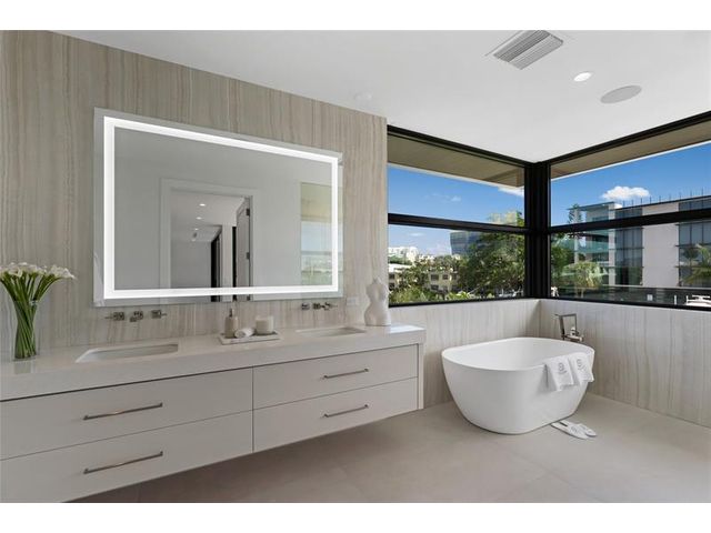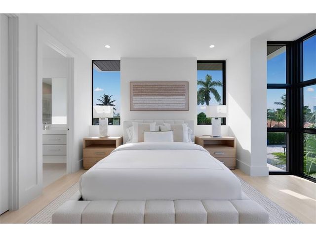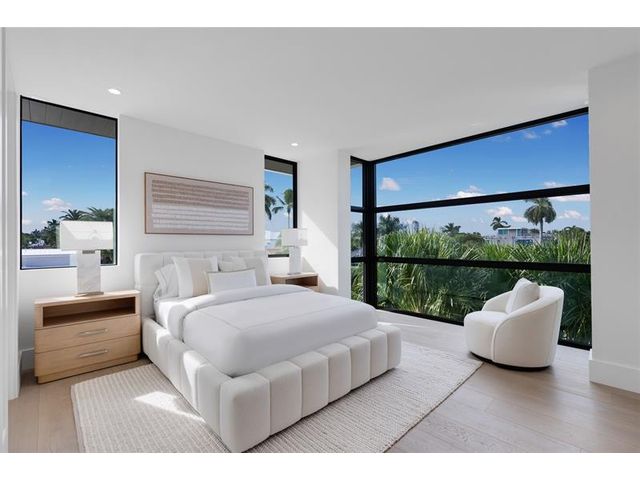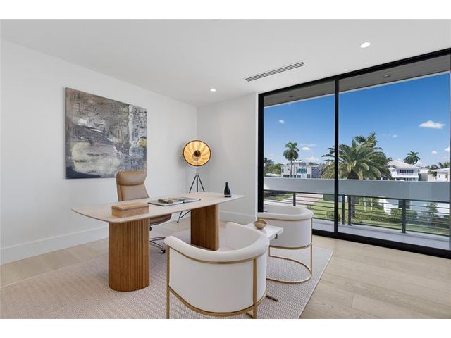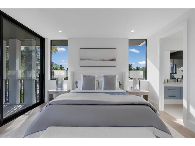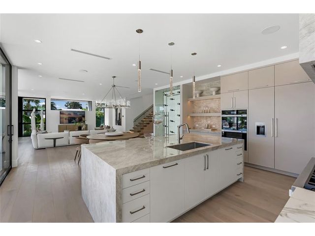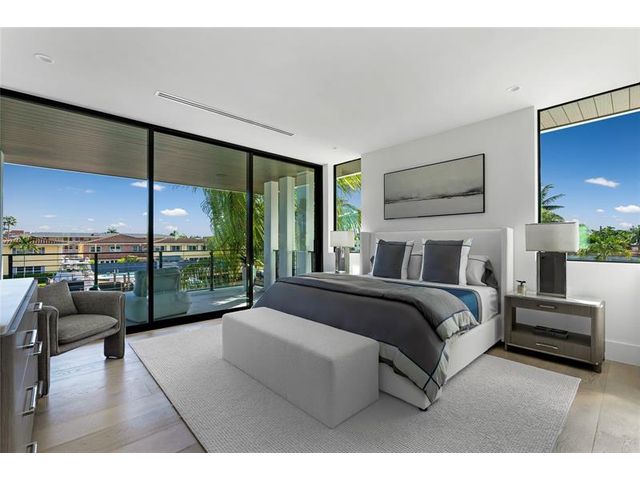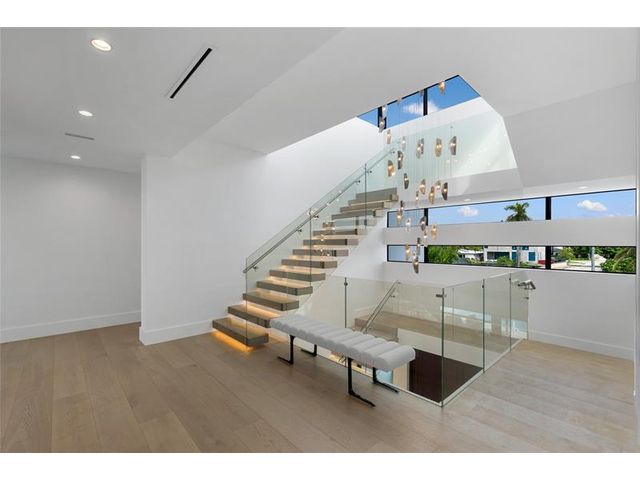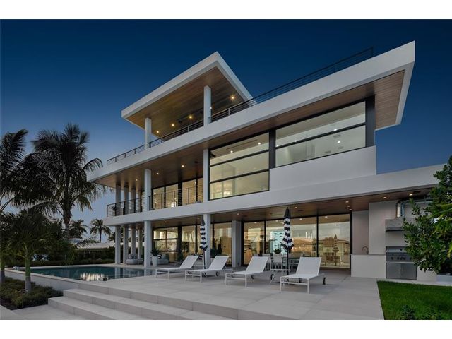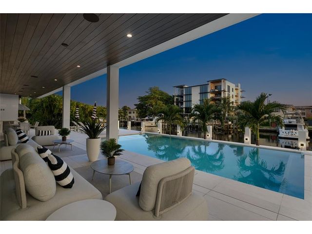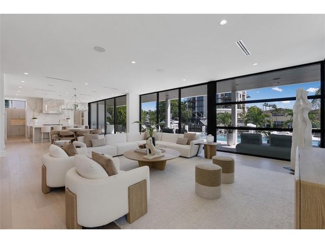 A bold statement of modern luxury, this newly completed residence offers 80 feet of deep water on a wide canal, ideal for most yachts. No fixed bridges with ocean access in minutes. Located in the exclusive enclave of Lauderdale Harbors, minutes from downtown, dining, shopping, and major airports. A soaring three-story entry with sweeping water views, five en-suite bedrooms, eight bathrooms, and a third-floor club room that can serve as a sixth bedroom or office. Highlights include an under-lit floating staircase, three-car garage with lift capacity for six cars, a chef’s kitchen featuring top-of-the-line Miele appliances and a gas stove. Enjoy indoor-outdoor living with a heated saltwater pool, spa, kitchen, outdoor shower, cabana bath, a new elevated concrete seawall and dock.