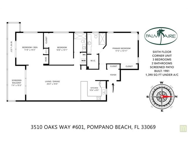 Beautifully updated corner unit condo in Palm Aire's highly sought after Oaks Way location. High-end finishes throughout, wood shaker cabinets in the kitchen and bathrooms, matching granite countertops / vanity tops, stainless steel appliances, washer / dryer in-unit, high-impact windows & doors, plantation shutters, gorgeous wood flooring in the main living space, fantastic golf and lake views from the fully-screened balcony. Secure Lobby with fob / phone access and a short walk to the closest clubhouse and pool. Quiet, clean community close to shopping and a short drive to the new casino! HOA is $1,022/mo & includes water, basic cable & internet! Association requires 10% deposit and 1 year of maintenance to be placed in escrow for min 3 years.