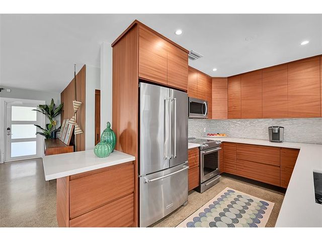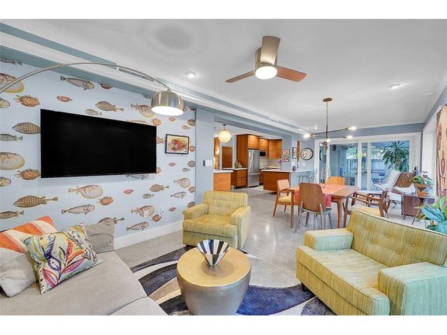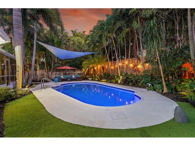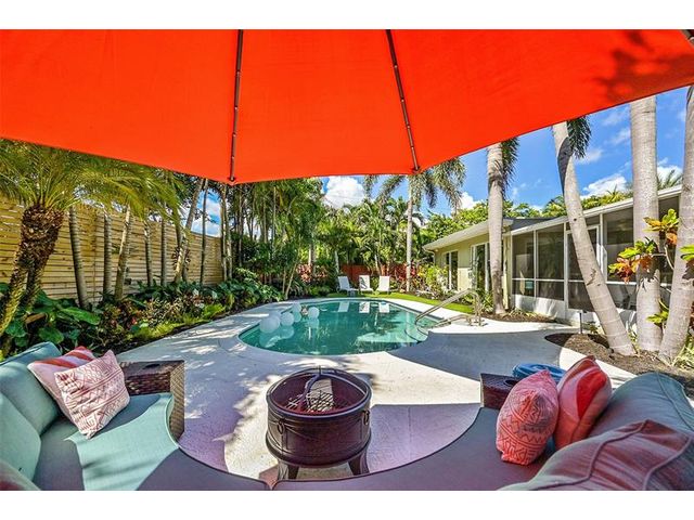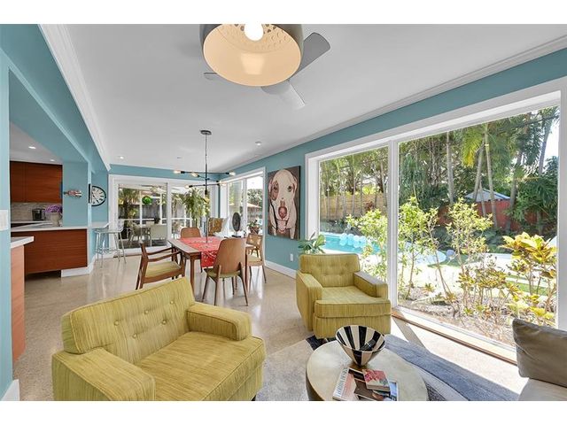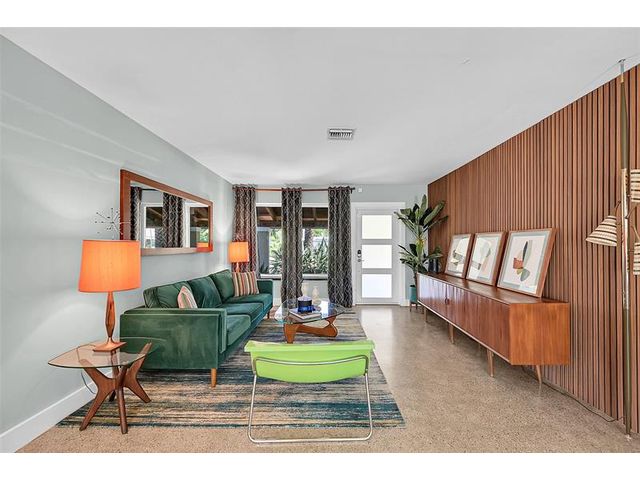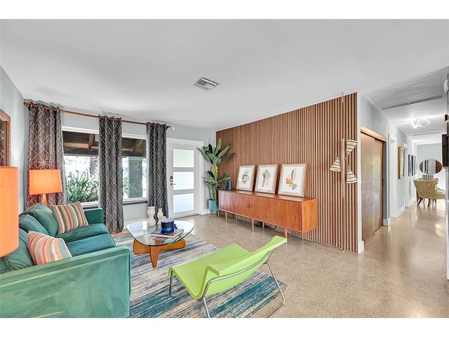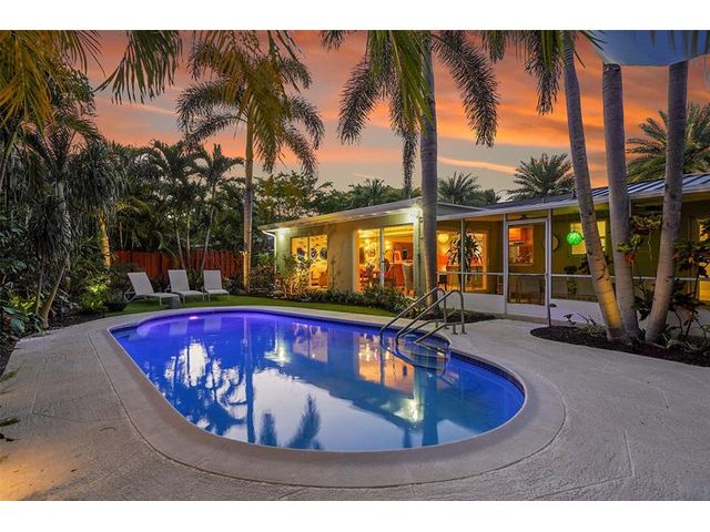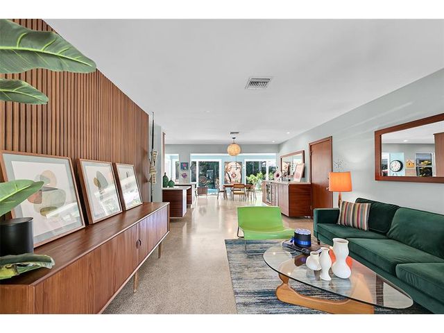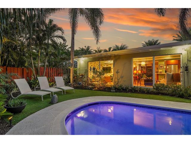 Experience the perfect fusion of mid-century modern design and today’s comforts in this 3BR/2BA Wilton Manors treasure. Ideally located minutes from Wilton Drive, shopping, dining, and the beaches. Light-filled open concept living showcases a stunning kitchen with stainless steel appliances, custom cabinetry, and terrazzo floors that flow throughout. Expansive impact doors and windows frame lush tropical views. Recent upgrades include a 2025 roof, renovated baths, and whole-house generator hook-up. The flexible 3rd bedroom doubles as a den or office. Relax on the screened porch overlooking landscaped gardens, dramatic lighting, and heated pool. A 1-car garage adds convenience to this private retreat making it a perfect blend of style, function, and location.