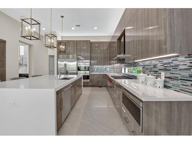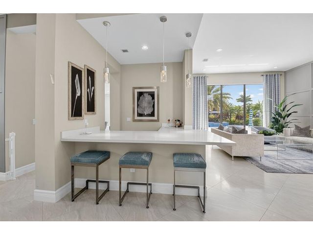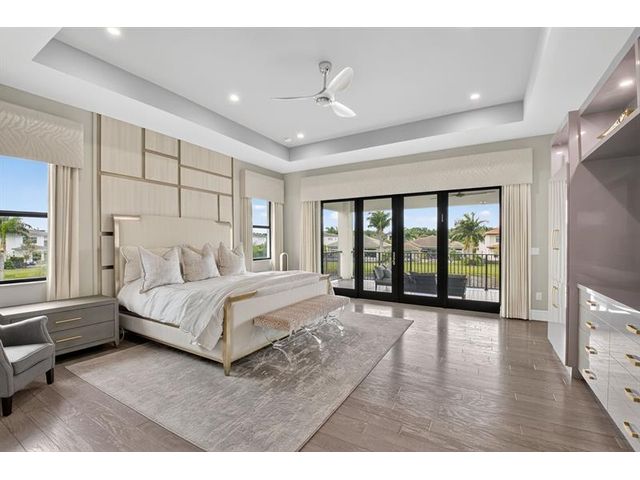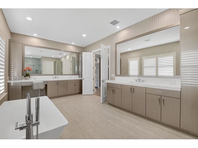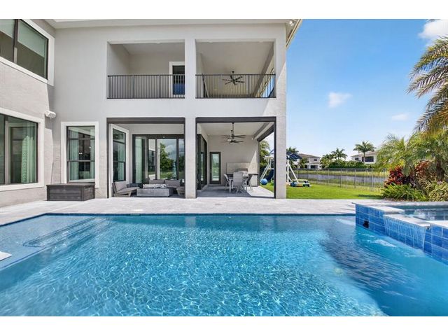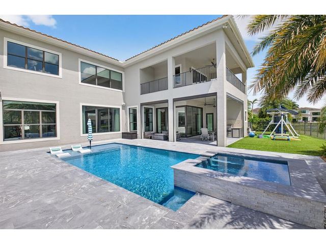 Set on one of the largest and most coveted pie lots in Boca Bridges, this stunning Palermo model is packed with upgrades and modern luxury. 5 bedrooms, 6.5 bathrooms + 2 Bonus rooms (6& 7th bedrooms) and private elevator. Chef’s kitchen with SubZero and Wolf appliances, upgraded cabinetry, backsplash, and an oversized island. Designer touches include custom closets, wet bar, dramatic feature walls, and wallpapered bathrooms. The first floor hosts a guest room and game room. A loft and a private movie room upstairs. The primary suite impresses with a custom wall unit, wood accent wall, and an expansive terrace. Outdoors, enjoy a turf backyard and a heated saltwater pool. 2 laundry rooms, 3 A/C zones. Boca Bridges offers resort style amenities including clubhouse, pool, tennis, pickle, gym
