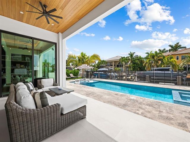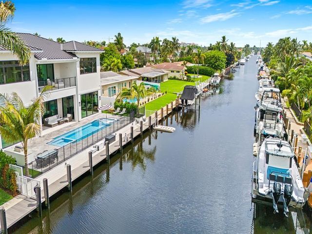 Constructed in 2024, this deepwater estate offers 80’ of prime waterfront just minutes from Hillsboro Inlet. Sun-drenched interiors with walls of glass showcase sparkling water views and seamless indoor–outdoor living. The open floor plan highlights a gourmet chef’s kitchen with walk-in pantry, expansive living and dining areas, and direct access to the resort-style backyard. Upstairs, a loft-style retreat connects four guest suites, while the primary wing features a spa-like bath and private balcony. Built with exceptional detail, amenities include impact glass, standing seam metal roof, elevator, dual laundry, 3-car garage, cabana bath, and custom finishes throughout. Outdoors, the south-facing pool and cascading spa capture all-day sun—the perfect setting for entertaining.