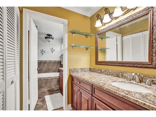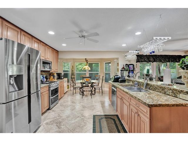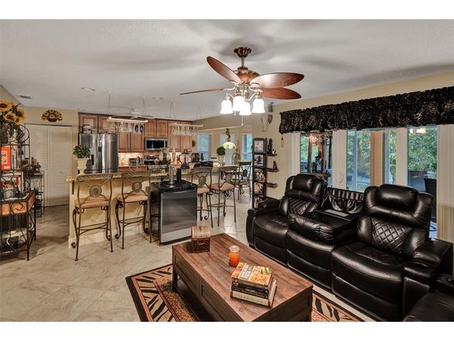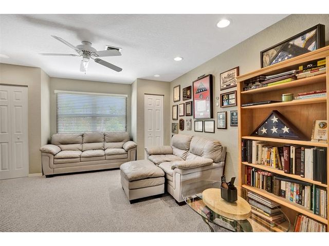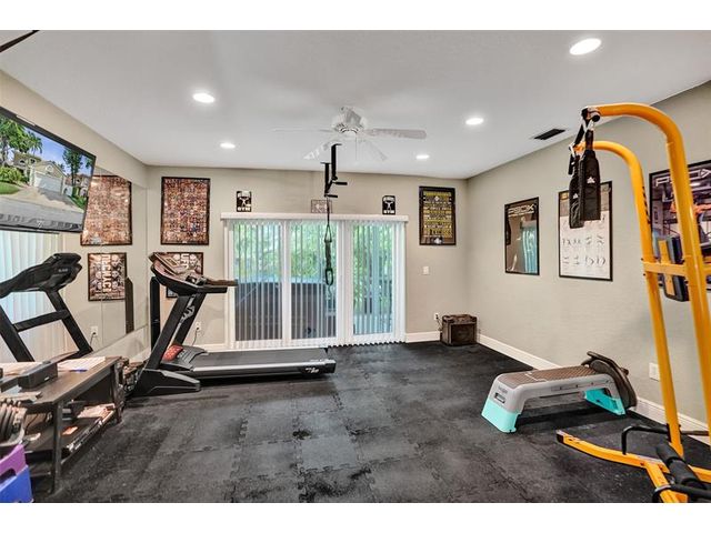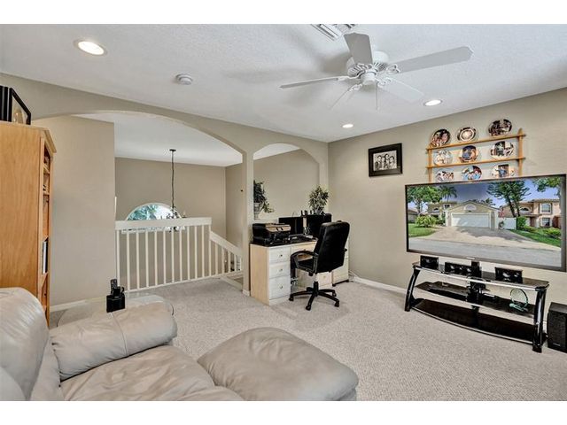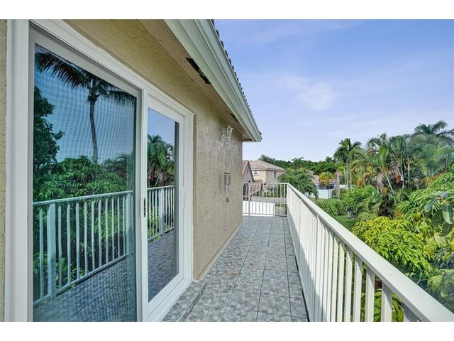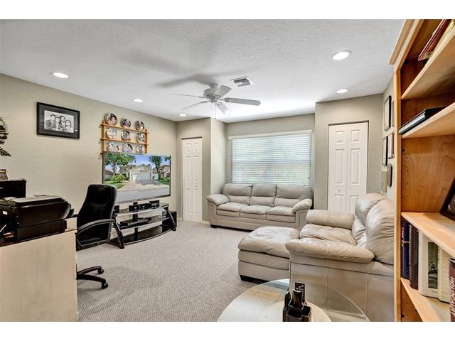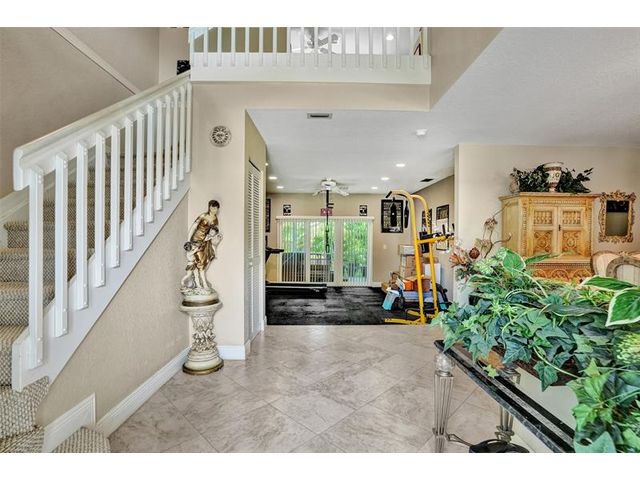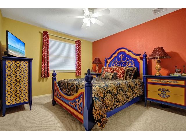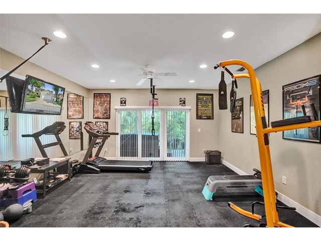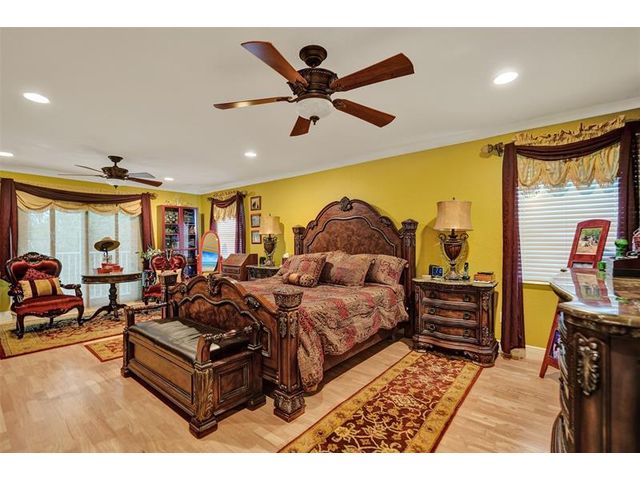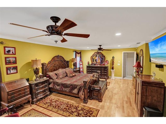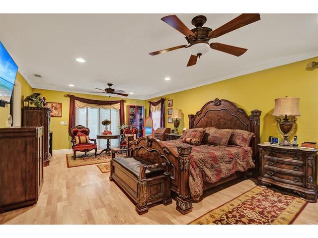 Stunning House with Royal Master Bedroom, Gym, Bakers Kitchen, Huge Layout, Turn Key Beautiful. This beautiful custom 4/3 home impresses with many upgrades! Master Suite is 25ftx15 with two XL walkin closets and sitting area that opens out onto a wrap around balcony with a lake view. A15x16ft loft with closets that can be your 5th BR. The Gourmet Kitchen has 42" cabs, granite, highend SS appliances & Double Oven impresses with a 10ft island. All Bathrooms with designer tile, hardwood cabs and granite. Home Gym as pictured. 45ft long lanai with a hot tub. NEW SOUTH IMPACT WINDOWS (lifetime warranty option) Alarm System, Surveillance Cameras Bose Surround Sound, Generator Hookup This home is pristine and move in ready! HOA includes landscaping, irrigation, pool & more.