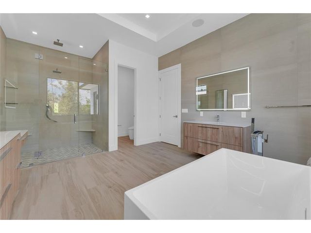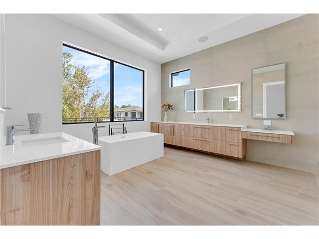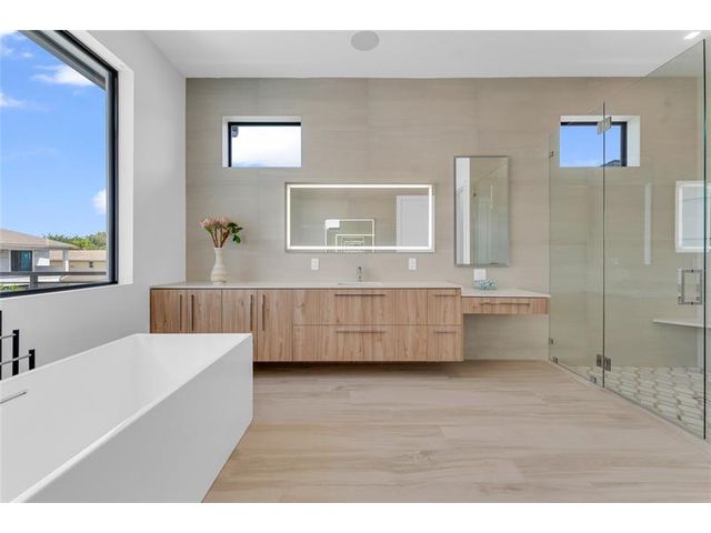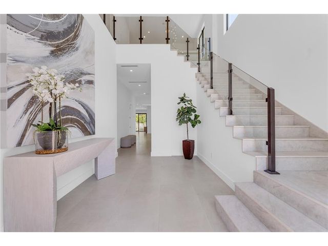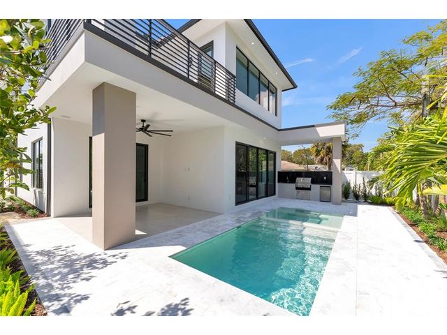 Just BUILT two-story residence located just minutes from Downtown Delray Beach and the beach. This smart home boasts 4,716 sq ft of luxurious w/ 4 bedrooms + den, 4.5 bathrooms, w/ a guest and den downstairs. The grand entrance features a breathtaking 24-foot ceiling and a glass railing staircase with a quartz landing. Gourmet kitchen are equipped with Wolf & Subzero appliances, including a wine cooler and a spacious island with a Taj-Mahal countertop and backsplash, making it perfect for entertaining. An elevator offers easy access to the 2nd floor and the primary bedroom. Outside, unwind in your private oasis with a salt-chlorinated pool, spa, summer kitchen, and elegantly landscaped backyard. Move-in ready, this home combines luxury and convenience in a prime location!