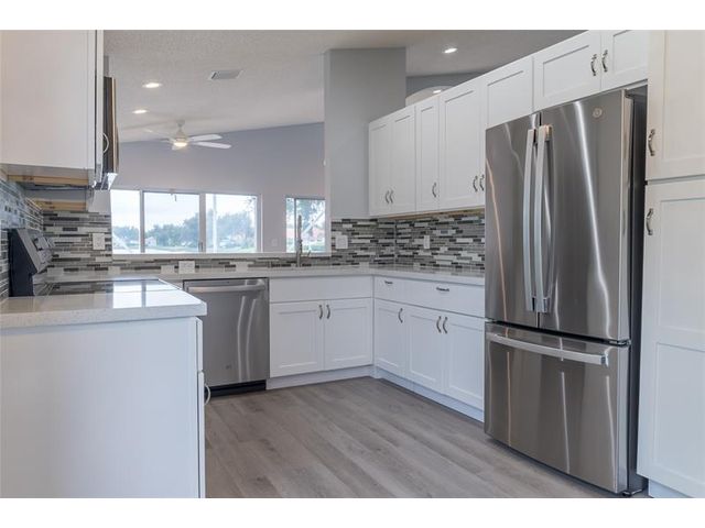 PRICE DROP! Welcome to Palm Isles in Boynton Beach. This 55+ community is located close to highways, shops, restaurants and a short drive to the beach. This 3 bed, 2 bath property has been beautifully updated with fresh paint, new waterproof vinyl flooring, new kitchen with all stainless steel appliances, and recessed lighting. The bathrooms have new frameless shower doors, new toilets and vanities. Relax and unwind on your private enclosed patio overlooking the lake to watch the sunsets. Enjoy an open layout that offers tons of natural light, 2 car garage with new rubber mat flooring, gutters, and vaulted ceilings. Community amenities include a 24/7 guard gate, tennis, pickleball, indoor/outdoor pools, cafe, and fitness center. A brand new clubhouse opens December 2025! BRING OFFERS!