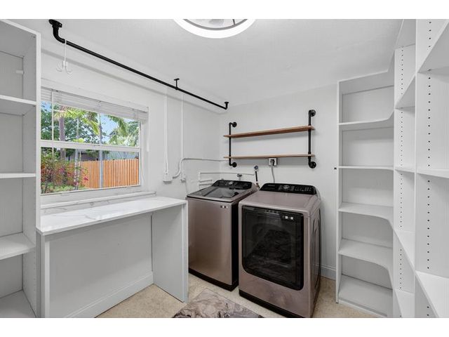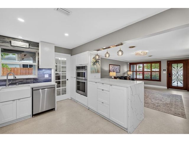 Beautiful 2 bed/2 bath home located in the highly desirable community of East Wilton Manors. Featuring elegant plantation shutters, crown molding & classic terrazzo floors thru-out, this home blends charm with modern upgrades. The kitchen is a chef’s delight with quartz countertops, SS appliances, gas stove, double wall oven, and plenty of cabinetry for storage. A separate laundry room off of the 1 car garage provides for great space and storage. Hurricane impact windows protect the property while the expansive backyard, screened in porch, marble pavers and synthetic turf create an outdoor oasis perfect for relaxing or entertaining. The circular driveway provides ample parking & side drive offers ample space for a boat. This home offers both style and functionality in a prime location!