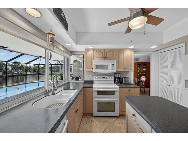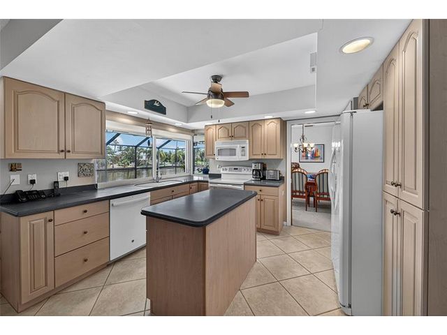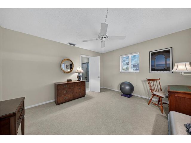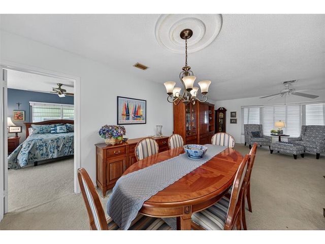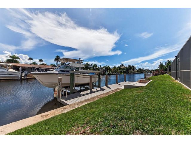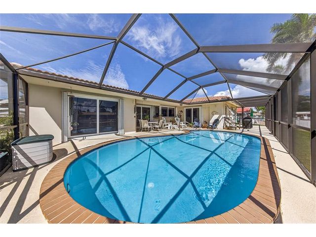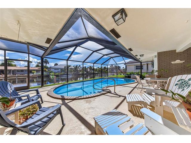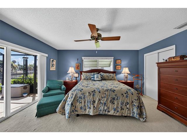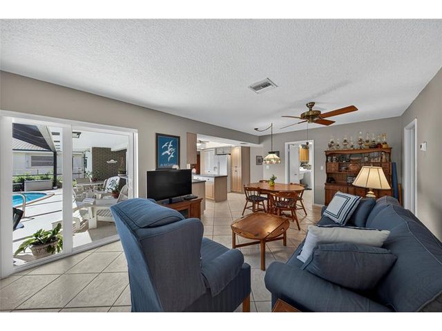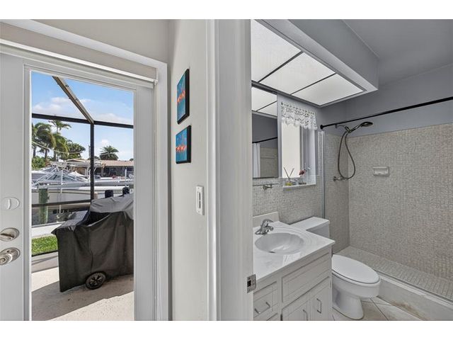 Well maintained 4 bedroom home with 2 original bathrooms, 2 car garage, screened pool and 80 feet of water frontage, one fixed bridge to ICW. Dock is composite and includes boat lift. Roof recently replaced in 2024, split package A/C units. Interior & exterior electric panels updated 2018 including generator hookup. Impact windows and doors. Kitchen is older but not original, opens to family room. Formal dining room in living room. Fourth bedroom connects to primary suite, ideal as an office, gym or nursery.