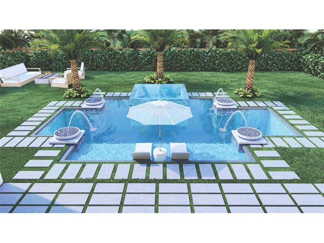 NEW CONSTRUCTION BY MSK HOMES | Designed by SILVANA BORGES | The Pinnacle of Poinsettia Heights | Coveted Street | 10,000+ Sq ft Lot | 1 story, Soaring 13'-16’ ceilings thru out | 4,042 total sq ft. Luminous open concept & high end finishes. Culinary kitchen with 12'+ center island, premium appliances & hidden walk-in pantry. The primary suite offers a large custom WIC w/ glass island & spa inspired bathrm outfitted with Kohler Anthem fixtures. 10' glass walls open to a covered lanai & summer kitchen with marine-grade cabinetry facing the pool, spa & waterfall framed in tropical landscaping. LED tray ceilings, Italian porcelain flooring, integrated speaker system, smart home features & elevated garage door for car lifts. Delivery April 2026. Customization available. Sq ft per Architect.