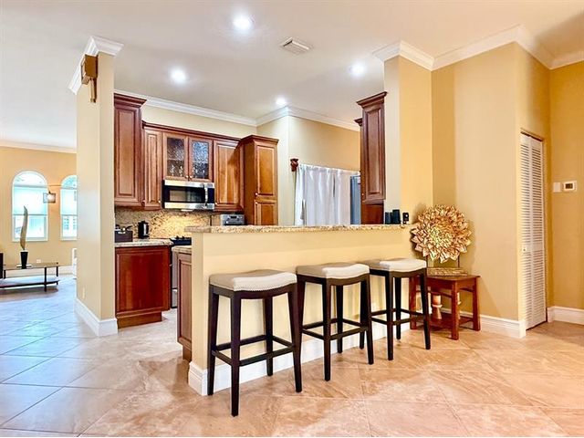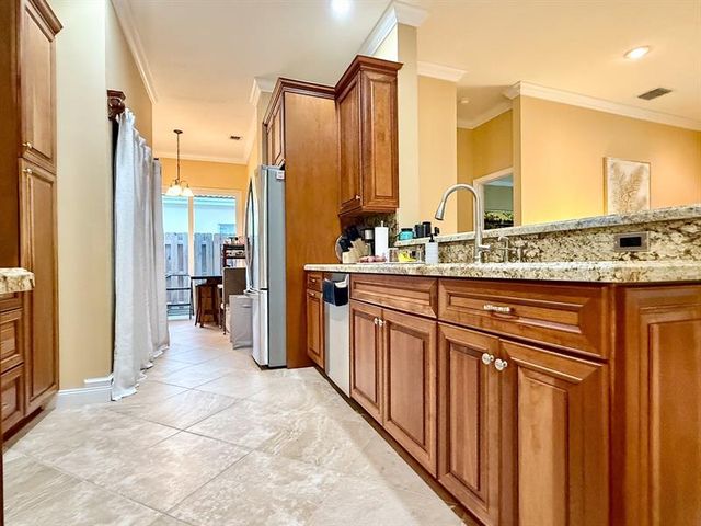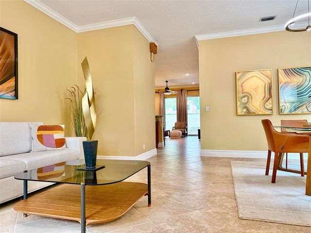Welcome to this Stunning and Beautifully Remodeled 3-Bedroom, 2-bath Single-Family Home nestled in the desirable Gated Community of Coquina. Bright and Open Split Floor Plan with High Ceilings, Crown Molding, NEW Lighting & Ceilings Fans. Beautiful Chef Style Kitchen with Custom Cabinetry, Granite Counters, Stainless Appliances including Bonus Room off Kitchen which can be used as an Office. Spacious Master Bedroom Suite, Walk-in Closet, Gorgeous Walk-in Shower & NEW Vinyl Flooring in all Bedrooms. NEW - Front Door, Hurricane Impact Windows, Blinds and (2) Sliding Doors. Enjoy the Private Backyard with NEW Expansive Paver Brick Patio & Fence. NEW Diamond Coat 2- Car Garage Floor & Freshly Painted Interior/Exterior. Clubhouse Pool and Playground. Meticulously Maintained Home & Low HOA Fee!