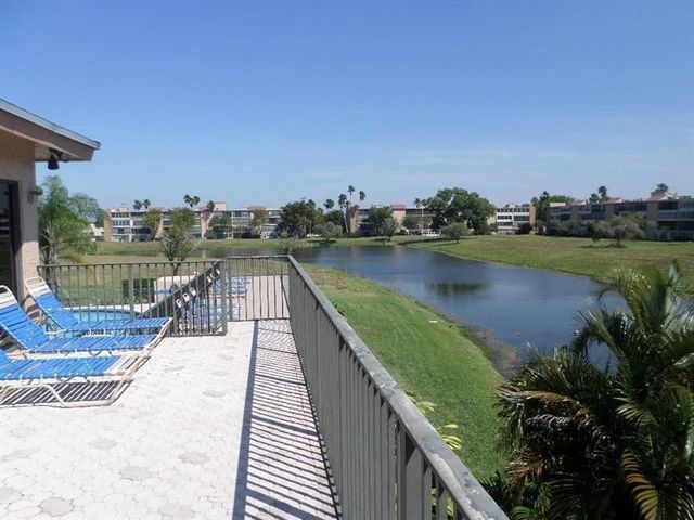 LOCATION! LOCATION! LOCATION! AMAZING WATER VIEWS FROM THIS 4TH FLOOR CORNER UNIT! LARGE TILED PATIO WITH ROLL-UPS. NORTH/SOUTH EXPOSURE! THIS 2 BEDROOM 2 BATH CONDO IS SPACIOUS & BRIGHT WITH THE EXTRA WINDOWS! EAT IN KITCHEN. WASHER AND DRYER IN THE UNIT. WALK IN CLOSET IN MASTER BEDROOM. HURRICANE WINDOWS! PET FRIENDLY COMMUNITY ALLOWS 2 PETS UNDER 20 LBS EACH. NEW FRONT DOOR TO BE INSTALLED BY ASSOCIATION. EXTRA STORAGE UNIT. WALKING DISTANCE TO POOL/TENNIS. CLOSE TO NEW PUBLIX, SHOPPING, WALGREENS, RESTAURANTS, & TRANSPORTATION! ASSOCIATION STATES 55+ COMMUNITY, $40,000 INCOME AND 650+ CREDIT SCORE.