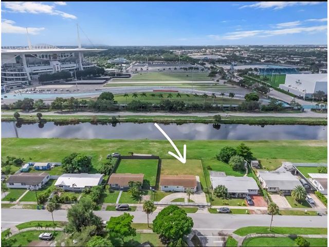 This is your perfect opportunity to acquire a beautiful water view property with the amazing Hard Rock Stadium as part of your backyard views. This home features impact windows & doors with an open concept, which include a touch screen refrigerator. The property has a huge backyard which is great for entertaining or for the kids. The roof, water heater, AC, and electrical panel were all recently updated. This property is conveniently located close to major highways and has an extended circular driveway, which has room to park a boat. You have to see it!!!!