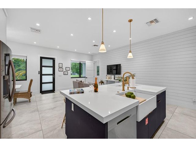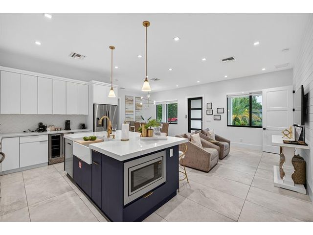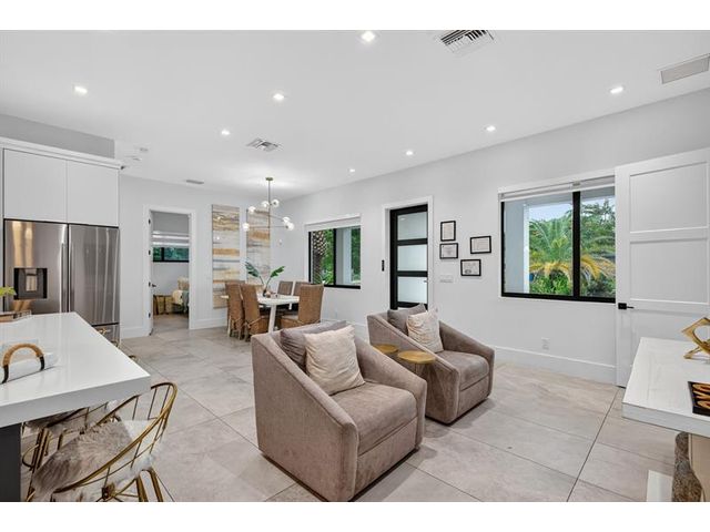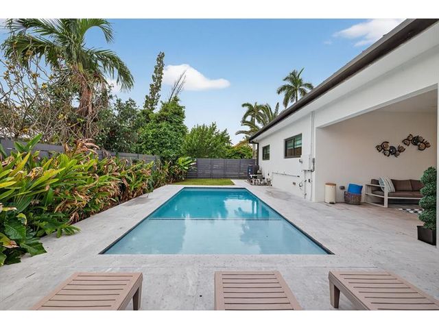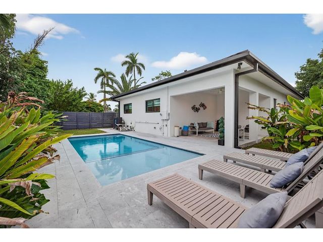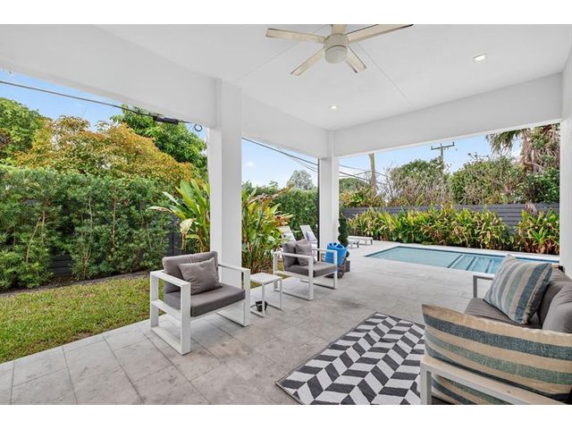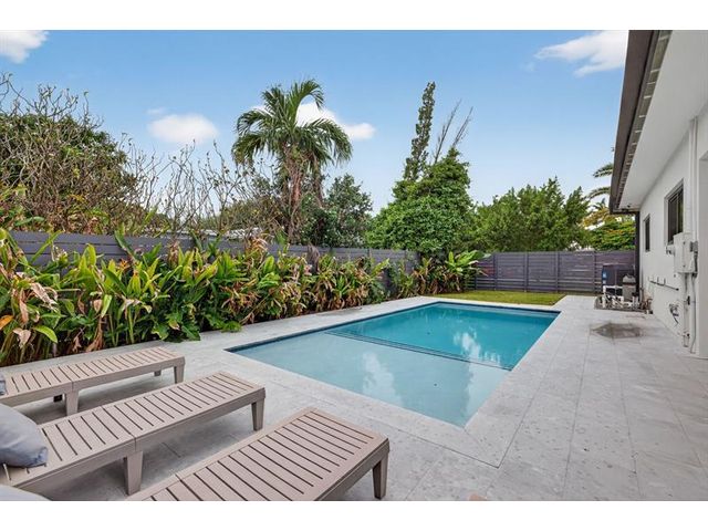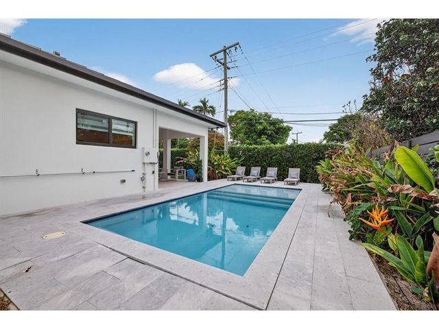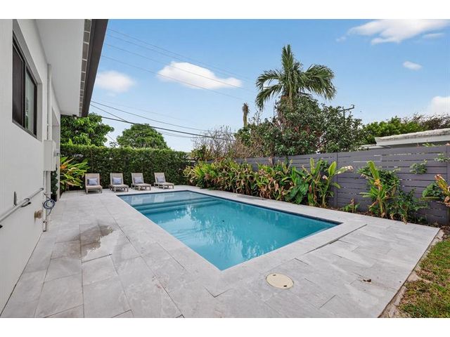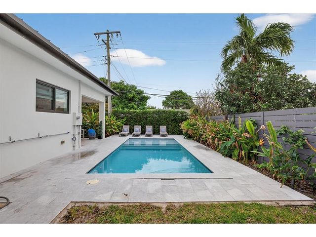 Step into a world of refined coastal glamour with this decorator-designed, 3 bedrooms plus bonus room, turnkey new construction home in south-after North Andrews Garden. From the moment you arrive, greeted by a large circular driveway, framed by soaring 50-ft. palms and a striking facade of a 2023 custom-built masterpiece. Indulge in the Florida lifestyle with a heated saltwater pool & expansive covered patio for seamless indoor-outdoor living, professionally landscaped grounds, interior special features:10-foot vaulted ceilings, open, coastal inspired kitchen designed for entertaining, split bedroom floor plan, each with custom California closets and spa-inspired bathrooms. Primary suite sanctuary. This home offers also a unique sister property for buyers seeking choices!
