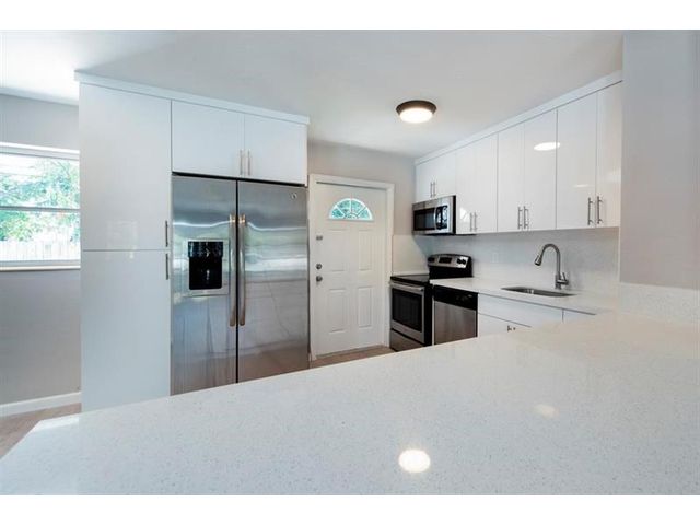 Newly remodeled 4-bedroom, 3-bath home featuring an open kitchen with stainless steel appliances, quartz countertops, and water-resistant flooring throughout. Bathrooms are tastefully updated with modern finishes. A new AC duct system ensures efficient climate control. The home has accordion shutters(2023), and hurricane/fire-rated doors for added safety and efficiency. Enjoy a spacious backyard, perfect for outdoor living and entertaining. Currently tenant-occupied, this property provides immediate rental income—ideal for investors or future homeowners. This home offers style, comfort, and strong investment potential and is close to I95 and a 8 minute drive to Pompano Beach Pier with great restaurants/entertainment. Schedule your showing today! No HOA!