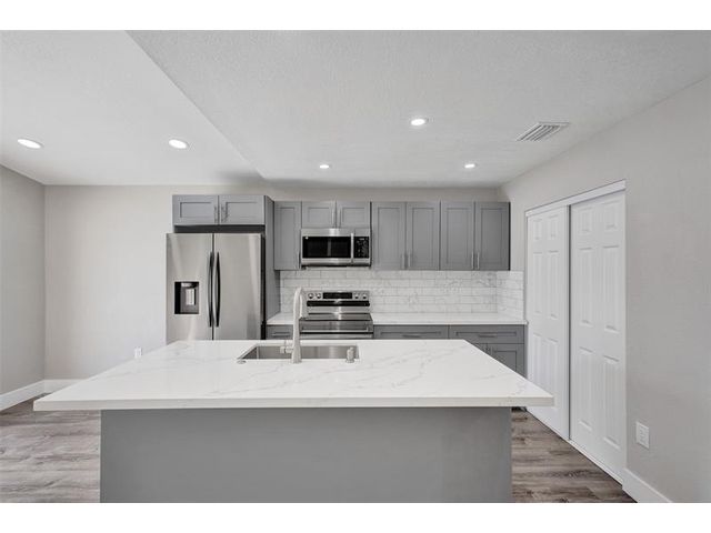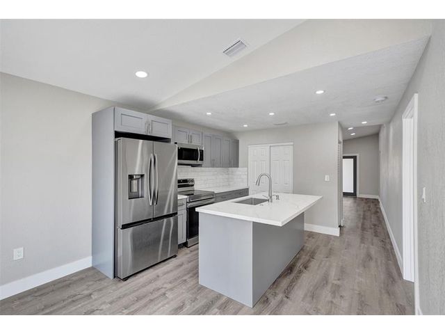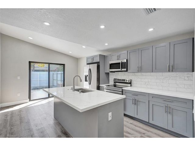 Turnkey perfection in gated El Prado by the Lake! FULLY upgraded 3-bed, 2-bath home checks every box: NEW ROOF, NEW hurricane impact doors, windows & sliders, NEW A/C, and NEW tankless water heater—peace of mind, security, insurance savings. NEW designer kitchen shines: quartz countertops, soft-close cabinetry, custom island, stainless steel appliances. Both bathrooms have been beautifully remodeled with frameless showers, modern vanities, and premium finishes. You’ll love the luxury vinyl plank floors, LED lighting, knockdown ceilings, and fresh paint throughout. Enjoy a large fenced yard for outdoor living plus community perks including 24/7 security, pool, basketball, and playground. Low HOA and a prime location near shopping, dining, major highways—don’t wait, this one is a must-see!