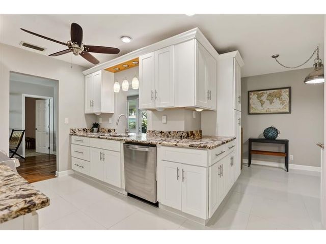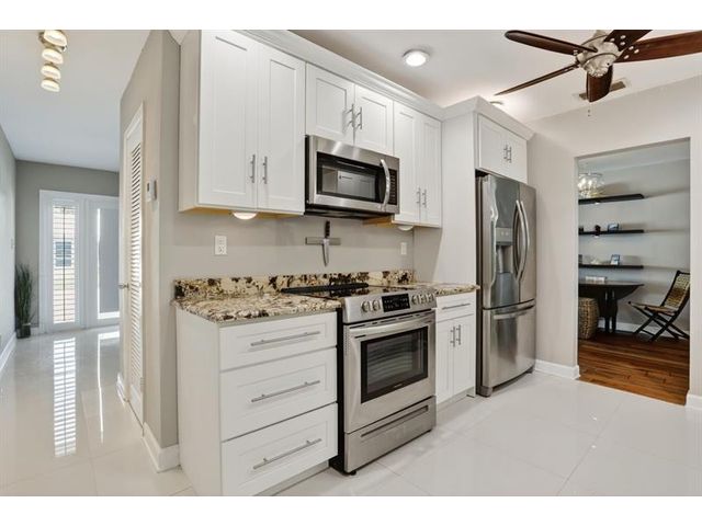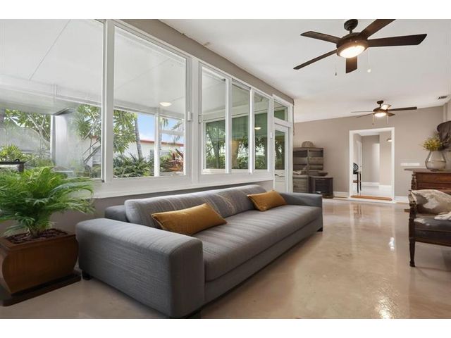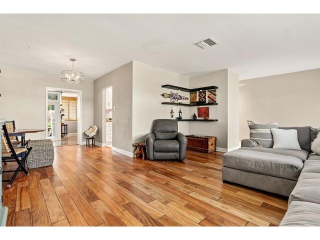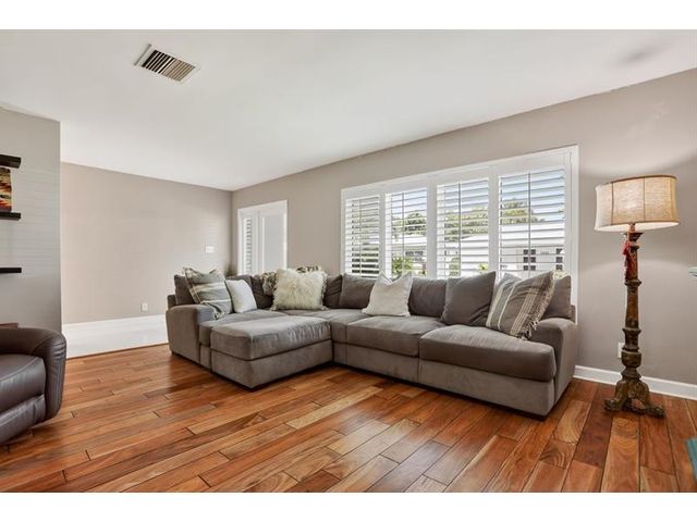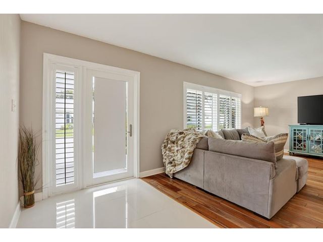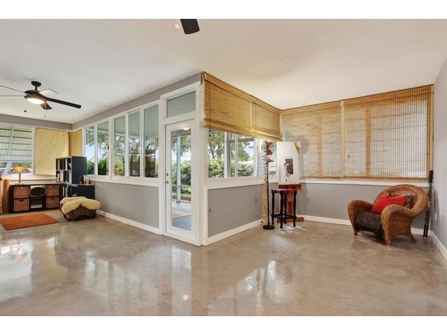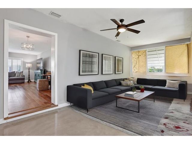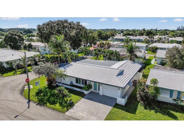 Stunning Contemporary home in 55+ Community of Mainlands featuring 2 beds + BONUS room, 2 baths, 1 car garage, almost 1700 sq ft under A/C, NEW Roof (2024) and Impact windows & doors. Nestled on a corner lot, this immaculate home also offers a large screened patio overlooking a private garden oasis. HUGH additional bonus room that can be used as a family room plus 3rd bedroom. Enjoy Plantation shutters, white porcelain tile, real wood flooring, white wood kitchen w/ extended cabinetry, Stainless Steel appliances & granite. Spacious primary suite w/ modern bathroom, walk-in closet & designer carpet. Perfect full time home or vacation getaway all w/ a low HOA fee ($105 monthly - Inc. clubhouse, pool, painting house, landscaping & sprinklers). Close to shopping, highways, beaches & more.