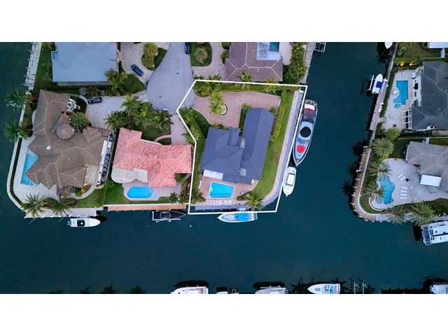 Yachtsman Dream!! 225' of dock space, point lot, deep water, direct ICW, turning basin, 27,000 LB lift, electric and water on the dock, 10 min to Hillsborough inlet. This home will house any size boat!! 5 bed/4.5 bath with an office, in-law and or crew quarters with its own private entry. The layout of this home is perfect for entertaining, the kitchen has a 6 burner Wolf range and a huge island and Sub Zero appliances. The grand foyer, stacked stone fireplace, wet bar, two family rooms that open to the Lani, the home was designed so each room has a view of the intracoastal. Upstairs is the primary that opens up to a 20x30 private balcony that overlooks the pool and the canal. If you have been looking for a private, waterfront estate to house your yacht and entertain in this is it!!