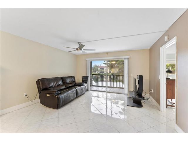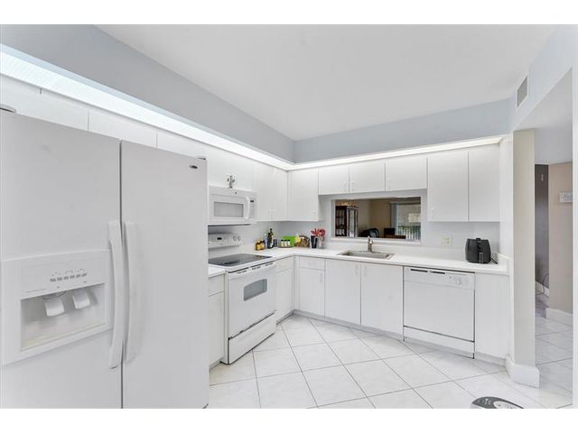 Tranquil 55+ waterfront condo offering an open, spacious layout with tile floors throughout and a bright white kitchen. The primary suite features an ensuite bath, large walk-in closet, and balcony access shared with the living room, overlooking a serene lake. Resort-style amenities include indoor and outdoor pools, clubhouse, golf, pickleball, theaters, restaurants, courtesy transportation, health clubs, marketplace, and more. Recent updates include A/C (2020), newer washer and dryer, ceiling fans, and vanities. Accordion shutters provide full storm protection. One assigned parking space. Ideal as a primary residence or easy getaway. Mortgage savings may be available for buyers of this listing.