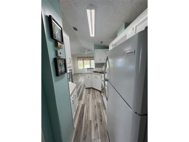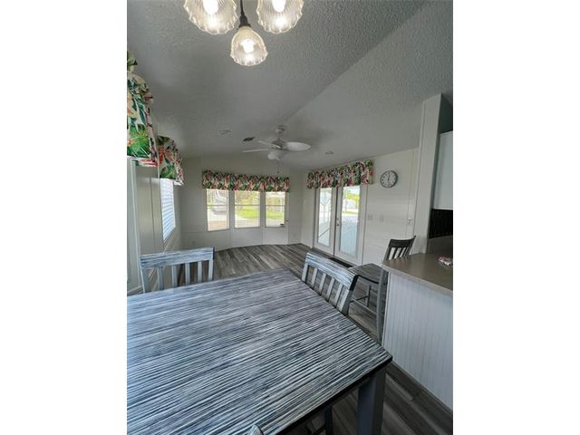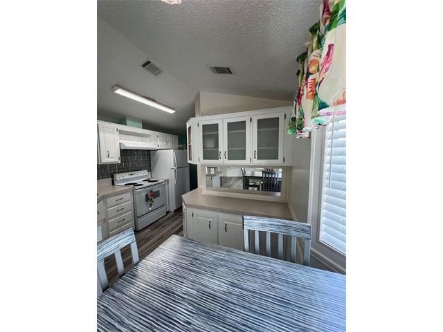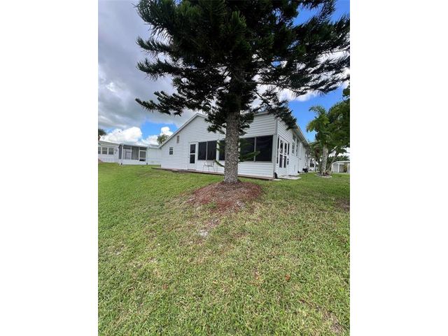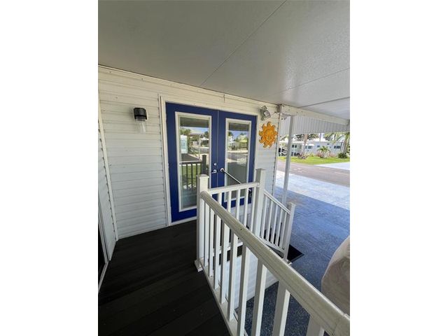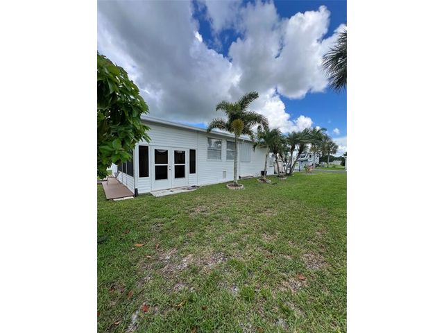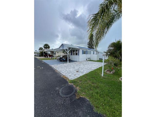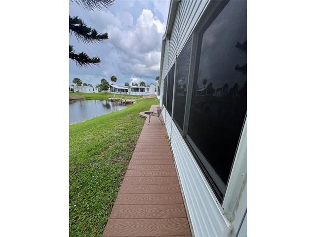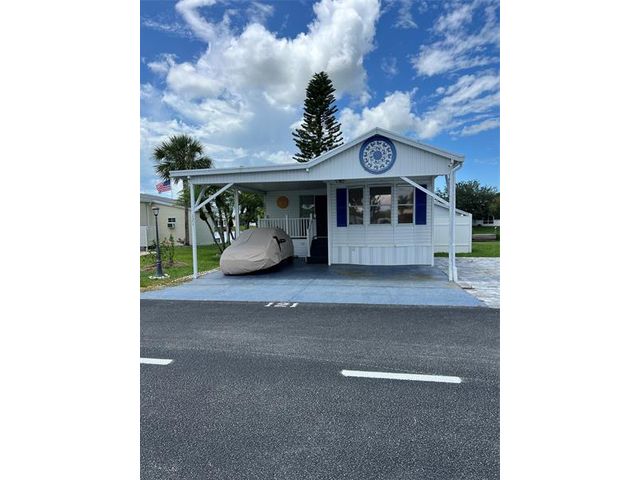 ~Blue Cypress Golf and RV Resort~ On a private lake with a beautiful view. Home has been renovated. This is an extra large lot w/double carport-plus 2 vehicle parking on pavers. 1994 Brit Park model with addition. 3 bed 1.5 baths. Huge Florida room with new sliding windows/screens- also under air. Newer metal roof & hot water heater. Composite front & back decks. Nice workshop! Partially furnished. Bring the toys! Golf course- Boat ramp.