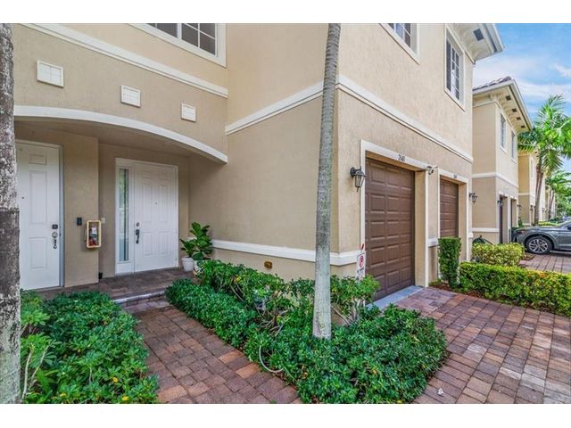 Immaculate 3-bedroom, 2.5-bath townhouse with 1-car garage in the sought-after community of Calabria Phase II. This spacious 2-story residence showcases an open-concept layout with soaring ceilings, tile and laminate flooring throughout, and hurricane-impact windows and doors. The stylish kitchen features stainless steel appliances, granite countertops, and plenty of storage. The upstairs primary suite features a luxurious bath with dual vanities and a walk-in shower. Newer washer & dryer. Residents enjoy community amenities including pools, playgrounds, and a scenic lake trail. Relax at home with serene private lake views, all in a prime location near shopping, dining, and the Turnpike. Low HOA.