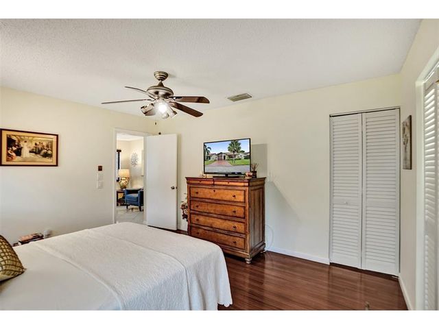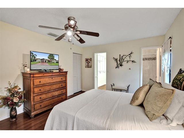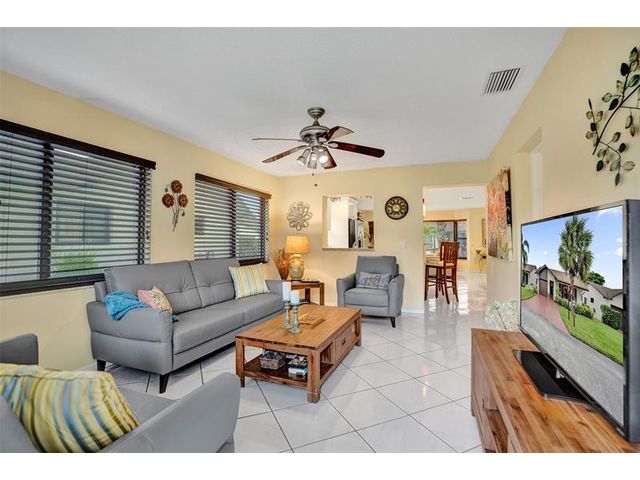 Welcome to your peaceful retreat in the sought after 55+ community at The Meadows of Crystal Lake. This updated 2 bedroom, 2 bathroom home is being offered fully furnished and turn key for an easy and seamless move in. Enjoy your morning coffee on the quiet back patio and watch the sunrise. This home features a split floor plan with formal and informal living areas, impact windows and doors, and the spacious primary offers en-suite bath and ample closet space for easy, organized living. AC is 2024 for peace of mind. Just steps to the clubhouse and pool where you can relax in the sun, grill at the outdoor kitchen, or challenge neighbors to a friendly tennis match.