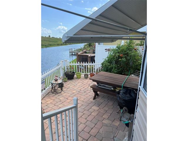 ~Big O RV Resort~ 55+ Community. 1 Bed with a loft- 1.5 Baths Park model located on the Rim Canal. Pavers with a nice patio on the water! Huge 10 X 20 Fl room/living room. New flooring throughout the home. Metal roof in 2018 with AC-Central heat & cool. Partially furnished. Nice outside Utility room/workshop. Bring the boat and go fishing or just a ride up the rim canal.