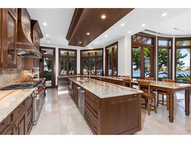 632 2ND Key Dr epitomizes the true meaning of a waterfront Estate. This masterpiece sits in the quiet & peaceful Sunrise Key neighborhood, on an expansive lot, nearing two-thirds of an acre, w/ 355' of prime WF and sweeping wide water views! Built by the esteemed Waterbrook Builders, find impeccable high-end finishes abound—from gleaming marble floors to soaring ceilings & floor-to-ceiling windows that frame breathtaking vistas from every room. The open-concept design flows effortlessly, ideal for hosting, w/ refined amenities including a dedicated wine cellar, media room, gym and sauna, elevator & a separate fully appointed guest house. Outside, an inviting infinity pool sits at the heart of the mega yacht dock, perfectly positioned to accommodate a prized collection of vessels.
