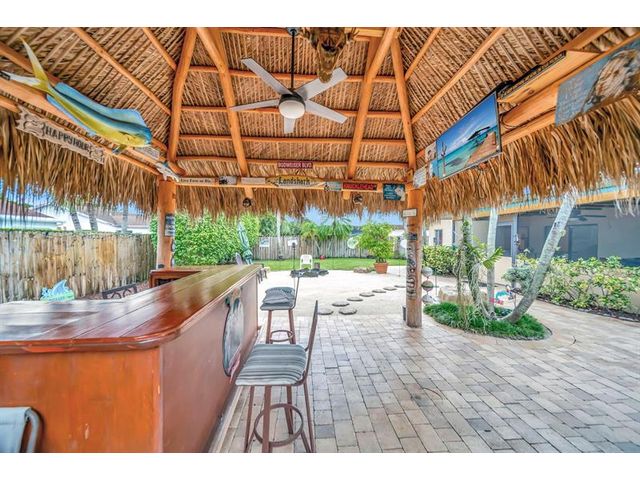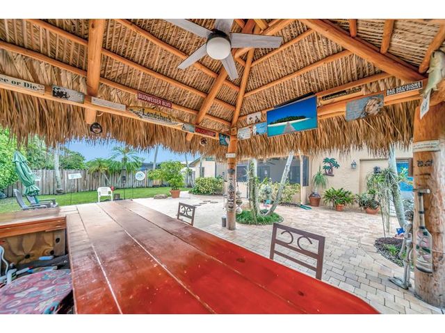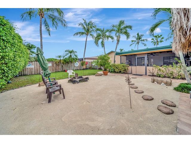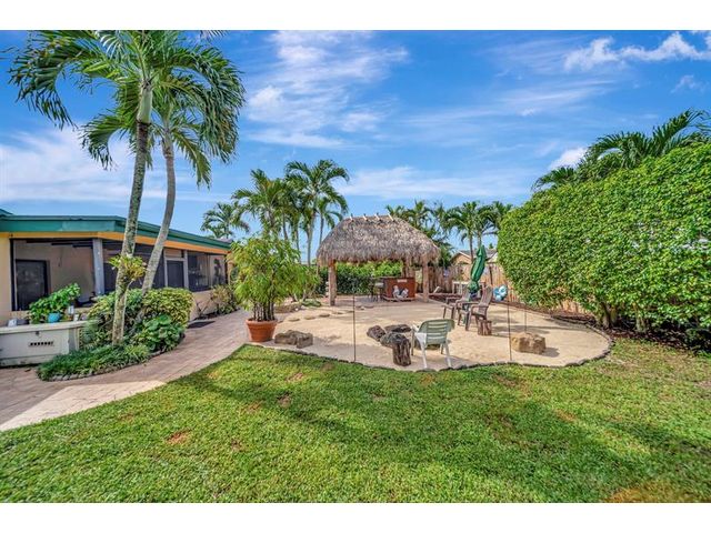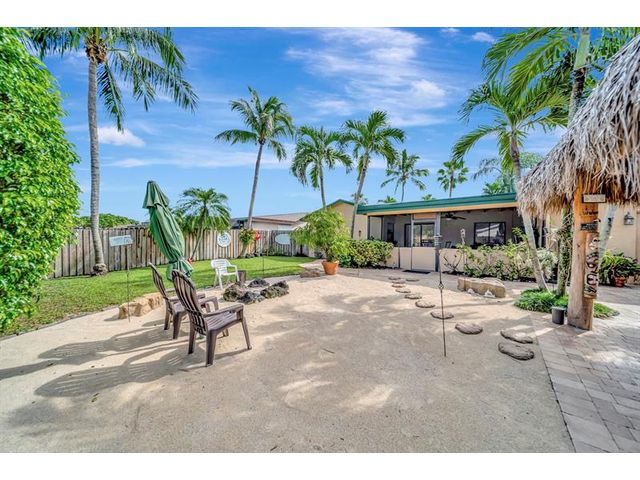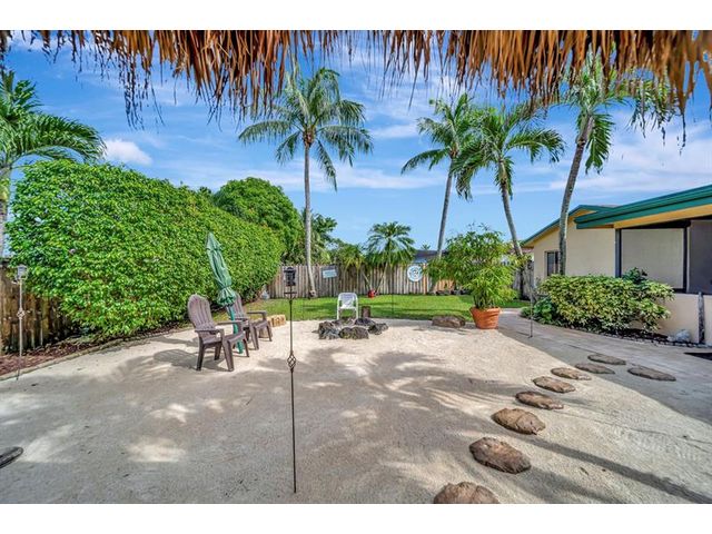 WELCOME TO THIS BEAUTIFULLY MAINTAINED 3/2 HOME W/VERSATILE DEN THAT CAN EASILY BE CONVERTED BACK TO 4TH BEDROOM. THE CIRCULAR DRIVEWAY & REFRESHED LANDSCAPING CREATES AN INVITING FIRST IMPRESSION. STEP INSIDE TO FIND A SPACIOUS OPEN-CONCEPT LIVING/DINING AREA, FRESHLY PAINTED, IDEAL FOR BOTH EVERYDAY LIVING & ENTERTAINING. THE UPDATED KITCHEN FEATURES RICH BROWN CABINETRY, GRANITE COUNTERTOPS, NEW FRIDGE & OVEN, ABUNDANT COUNTER & STORAGE SPACE. LARGE PRIMARY ROOM W/WALK-IN SHOWER. OUT BACK FEATURES:FULLY FENCED IN YARD, DESIGNED FOR BOTH RELAXATION & FUN. ENJOY A SCREENED-IN PATIO, BRAND-NEW TIKI HUT, FRESHLY LAYED SAND SURROUNDED BY PAVERS & OPEN GRASSY AREA PERFECT FOR KIDS & PETS. ROOF:2017, NEWLY PRESSURE-CLEANED DRIVEWAY & REFRESHED LANDSCAPING.