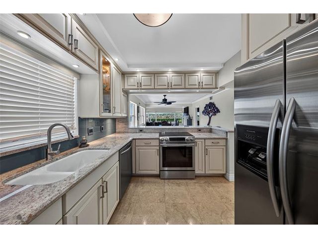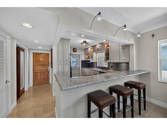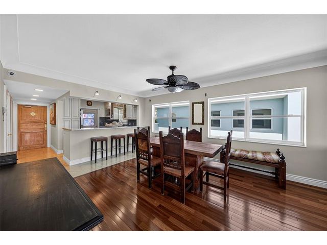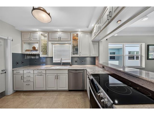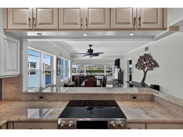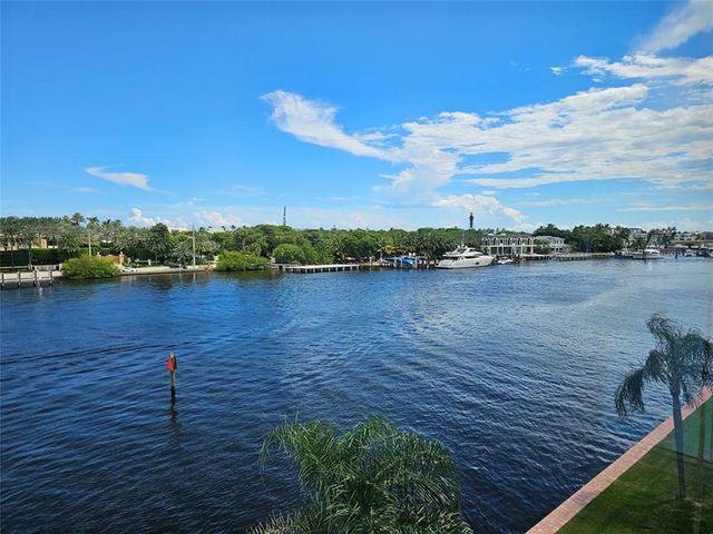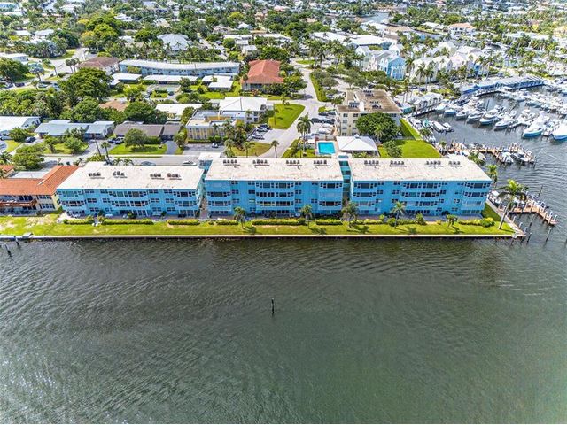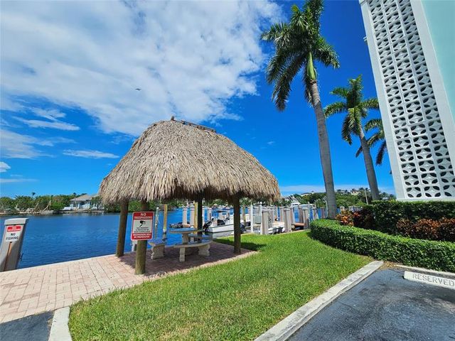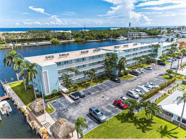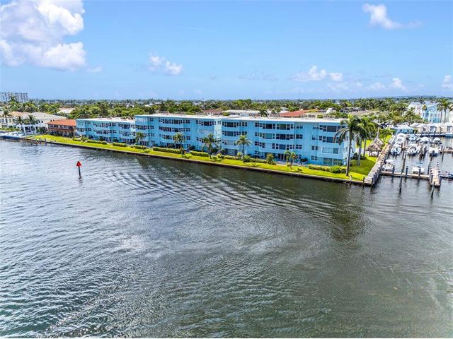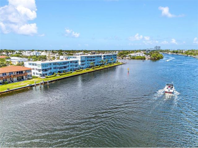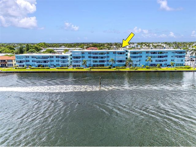 Stunningly remodeled & freshly painted top-floor 2BR/2BA condo with panoramic views of the Intracoastal, inlet, ocean and iconic Hillsboro Lighthouse. Watch the daily boat parade from your window or stroll to the Nauti Dawg Café and Lighthouse Point Marina. This move-in ready unit features a modern kitchen with 42" custom cabinetry, granite counters, and stainless appliances. Spacious bedrooms offer ample storage, and both baths are tastefully updated. Impact-rated windows & shutters, wood floors & walk in closet. The all-ages community provides resort-style amenities including a pool, clubhouse, tiki hut with grills, and private dock with slips for rent. Land lease included in HOA. You won't find better views! Coastal living at its finest in Lighthouse Point!