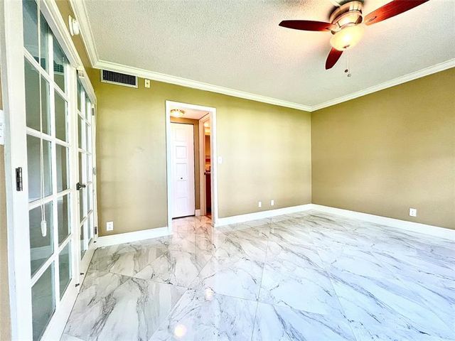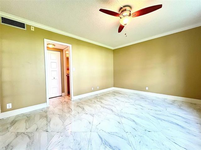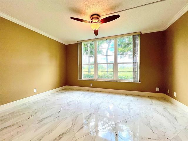 Move-in ready and thoughtfully upgraded, this residence blends convenience and elegance. This beautiful 2 bed, 2 bath, 1,064 sq. ft. condo offering style and comfort in a serene setting. Just steps from the pool and clubhouse, this 1st-floor home features an updated kitchen and baths, impact windows, marble floors, crown molding, and custom closet organizers. Enjoy peaceful pond views from your living space, creating the perfect retreat. Well-managed building with strong reserves, no pending assessments, completed 50 year certification and reserve study. Association requires minimum 10% down; no minimum credit score.