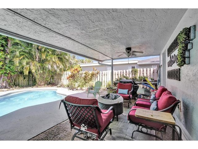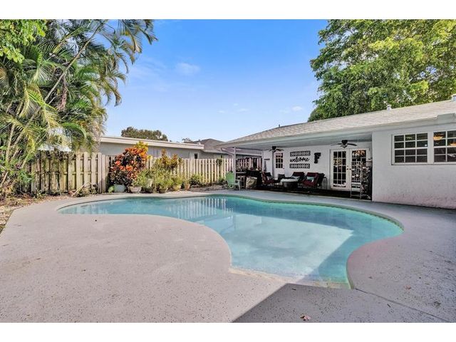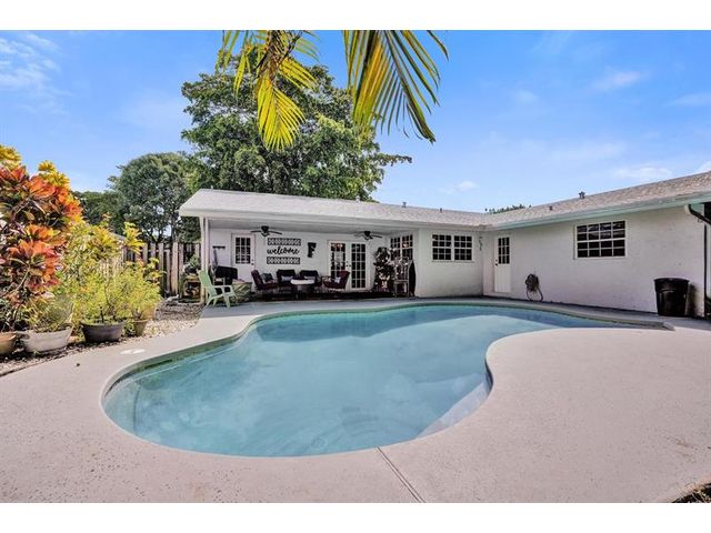 Bright, breezy, and beautifully maintained—this 4-bed, 2-bath gem in sought-after Plantation Hills offers the perfect blend of comfort, style-South Florida charm. With no HOA, enjoy true freedom on an oversized fenced lot bursting with mature lychee-mango trees. Light-filled interior features a spacious split floorplan, large living room, den, dedicated dining room perfect for hosting. The upgraded kitchen shines with granite countertops, rich wood cabinetry, and a cozy breakfast nook. Two cabana baths open to your private patio and sparkling pool—your backyard oasis awaits! New roof (2023), A/C (2020), new H/W, dedicated laundry room for convenience. Garage partially converted for extra storage. Prime location—walk to shops, dining, minutes to highways. Seller credit available—act fast!