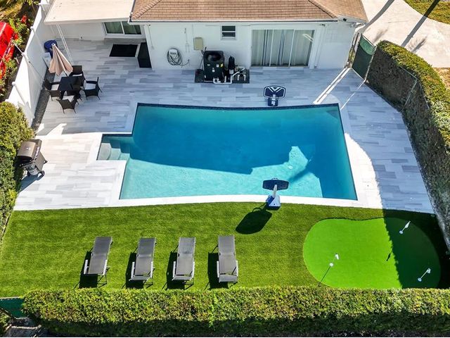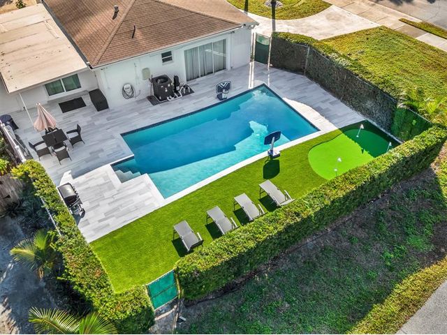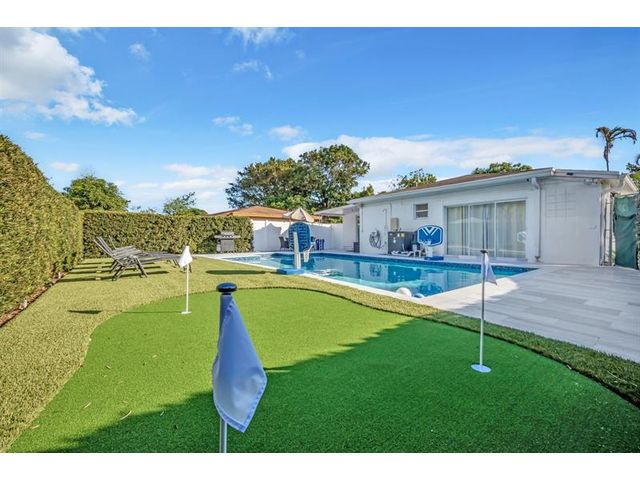 This inviting 3-bedroom, 2-bathroom home, located near downtown Delray, boasts an amazing pool oasis and putting green, The home was remodeled in 2021. The spacious interior features a thoughtfully designed layout, including a modern kitchen, cozy living areas, and an extra room currently used as the master bedroom with a beautiful pool view, along with well-appointed bedrooms. Step outside to your own private oasis with ample space for lounging, perfect for relaxation and entertaining, plus a large side yard to store your boat, fully fenced and adorned with fruit trees. With its prime location, this home offers both tranquility and convenience. Experience the best of indoor and outdoor living in this delightful 3-bedroom, 2-bathroom home with a pool. The home is sold fully furnished.