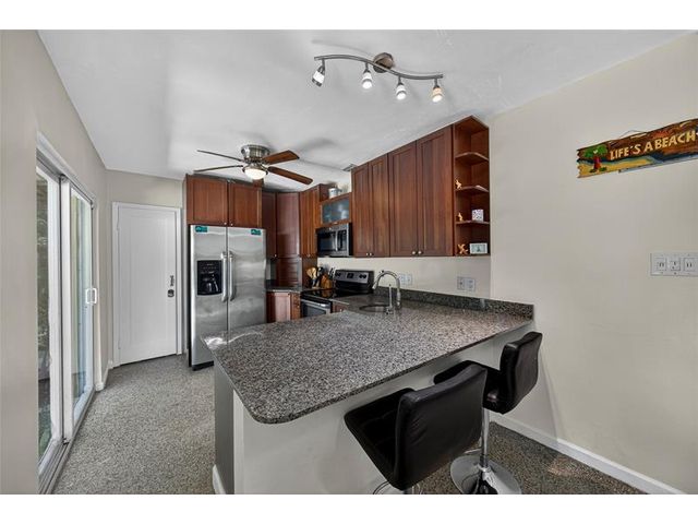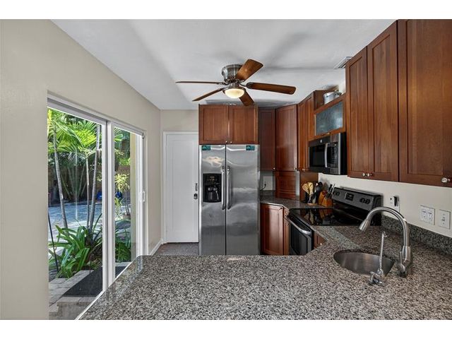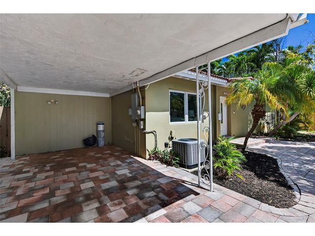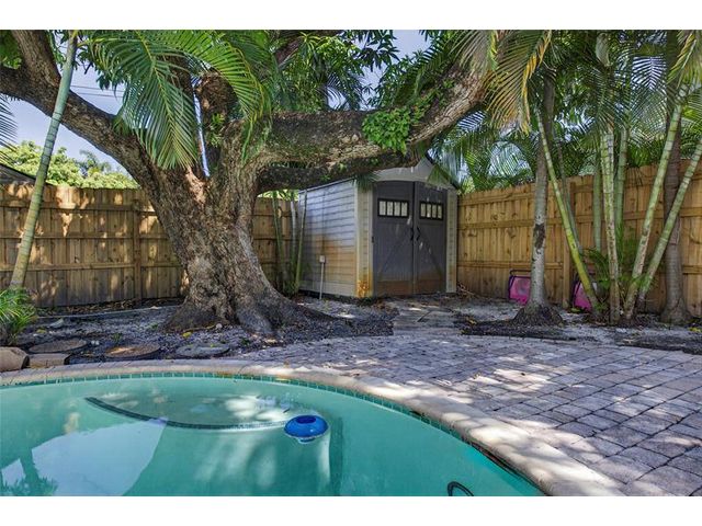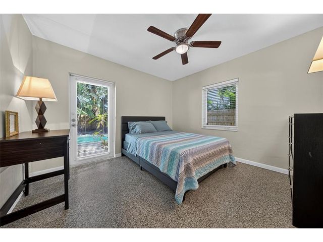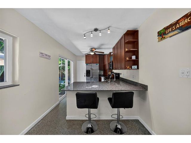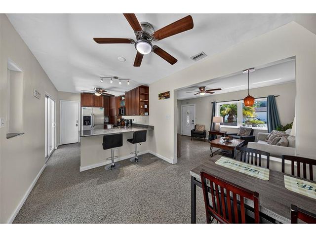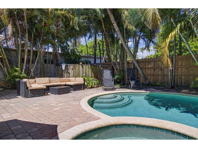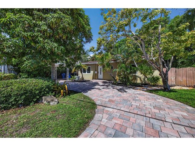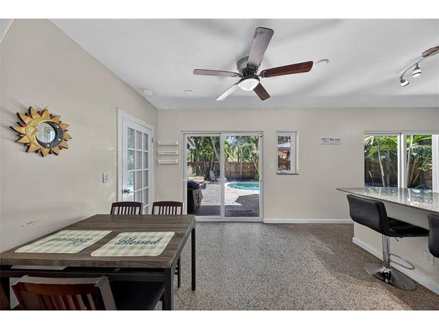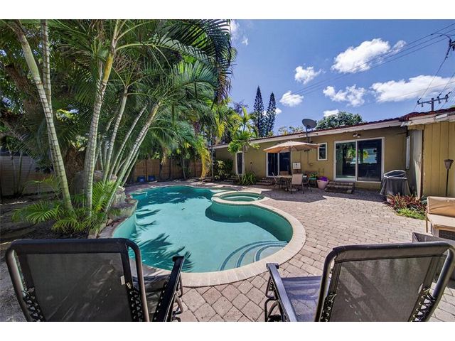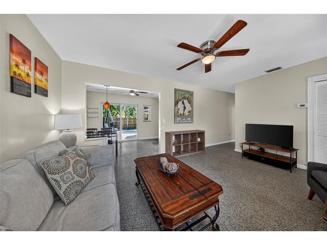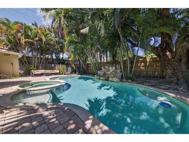 HIGHLY desired Poinsettia Heights neighborhood gem! Updated kitchen with granite counters, large pantry and snack counter facing the beautiful pool area. Primary suite offers renovated bathroom with walk-in shower and walk-in closet split from the other two bedrooms. Nicely updated guest bathroom has a tub and shower combination and large linen closet. Extra closet in the hallway. VERY good condition terrazo flooring throughout. Large heated pool with relaxing WATERFALL FEATURE and hot tub are in a VERY private backyard. Home offers a ton of natural light, a carport and a nice circular driveway made out of pavers. Ideal for a primary home, second home or short term rentals! No HOA. Close to the beach, downtown and 15 mins to the airport.
