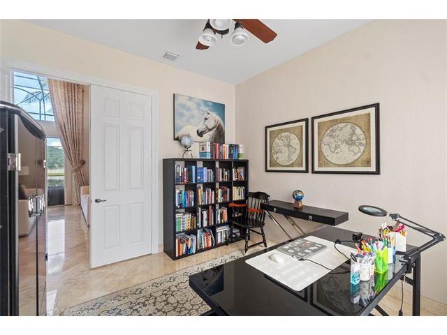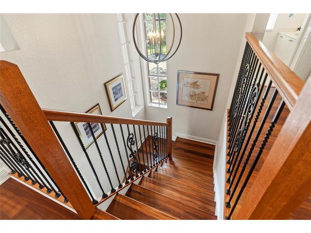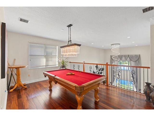 Elegant 4BR/office/big loft /3.5 BA home featuring marble floors on the main level, hardwood stairs & second floor, and a custom wrought-iron staircase. One bedroom downstairs with a private bathroom and office, spacious layout with gourmet kitchen, formal dining, and a luxurious primary suite. Enjoy outdoor living with a resort-style pool with jacuzzi, screened patio, and screened balcony. High ceilings, abundant natural light, and premium finishes throughout. Homeowners Association includes internet, alarm, cable and 5-star clubhouse