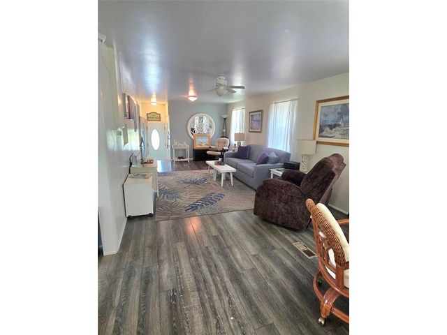~BLUE CYPRESS GOLF & RV RESORT~ Discover tranquil waterfront living at Blue Cypress Golf and RV Resort. This newly renovated one-bedroom, one-bathroom home offers a spacious 1,670 square feet of comfortable living space. Situated on a premium corner lot with extra space, this charming retreat features a serene patio with peaceful water views. Step inside to a generously sized living room and a fully furnished interior that's move-in ready. All major appliances are included—even washer and dryer—so you can start enjoying resort living immediately. The amenities are: The 9-Hole golf course, pickleball, heated and cooled swimming pool, or try your hand at shuffleboard. Your private dock provides direct water access for fishing enthusiasts and nature lovers. All measurements are approximate.