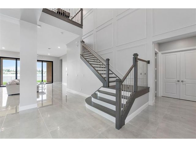 Located in Parkland Bay with stunning west-facing lake views and picture-perfect sunsets! This expansive 4,200+ sq ft home features 4 bedrooms, an office, loft, and 3.5 baths. The primary suite has a spa-style bathroom with soaking tub and large shower, and custom built walk-in closets. Downstairs also offers an office and powder room, while upstairs includes a loft, 3 bedrooms, and 2 baths—one en-suite. Situated on an oversized, fenced lot with impact windows/doors and summer kitchen-ready setup. Interior highlights: chef’s kitchen with double quartz island, GE Monogram appliances, high-gloss tile downstairs, wainscoting, wood floors upstairs, upgraded rails, flat walls, and custom closets throughout. Enjoy resort-style amenities: heated pool, gym, tennis, playground & A+ schools!