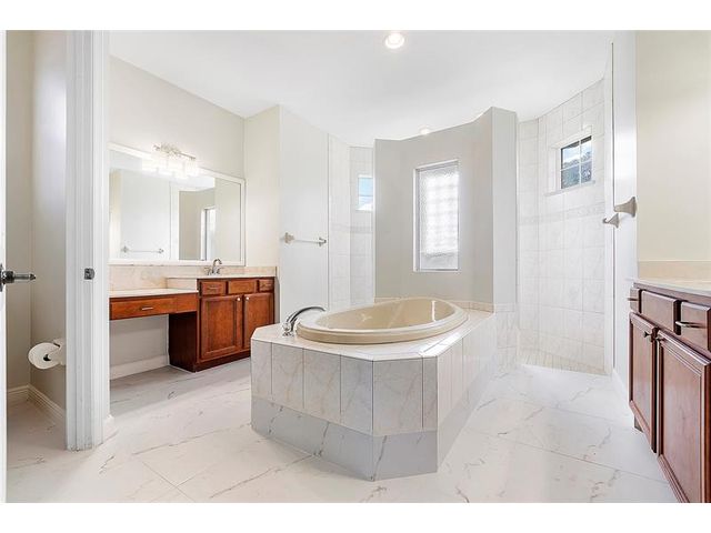 Assumable mortgage! View this rare, freshly painted beauty in a NON HOA community. 4 large bedrooms and 3 full baths. The interior boasts with high ceilings, BRAND NEW luxurious tile, LARGE laundry room, French doors, and double living space. The KITCHEN is TOP NOTCH and a chef's dream. WOOD CABINETS, DOUBLE OVEN, SOFT CLOSE DRAWERS, DOUBLE PANTRY, under cabinet lighting, pot filler, all with top-of-the-line finishes. The MAIN BEDROOM offers 2 oversized WALK IN CLOSETS with NEW FLOORING, bathroom with bidet, sitting area, and private OFFICE. The back porch area has been converted with permits to be under air. Home also offers a vacuum system which covers the entire space, irrigation, blue tooth, and camera system. VA & FHA WELCOMED!