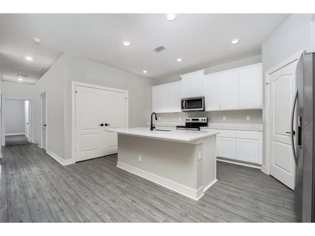 Ask about our limited-time incentives, builder-paid closing costs, and more! The Santa Maria offers a spacious, one-story layout designed for comfort and style. Located in Celebration Pointe, this 4-bedroom, 2-bath home features a charming exterior, generous bedrooms, and a welcoming covered entry. The chef-ready kitchen boasts a breakfast bar, sprawling countertops, and wood cabinets with crown molding -perfect for entertaining. Additional highlights include a laundry room and fully landscaped front yard. Enjoy a prime location with access to family-friendly amenities like walking paths, a playground, and a future community clubhouse. Plus, enjoy easy access to shopping, dining, and top-rated schools!