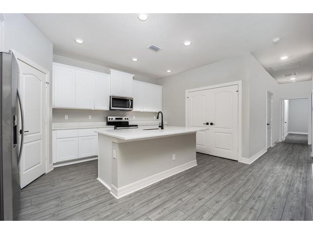 Ask about our limited-time incentives, builder-paid closing costs, and more! The Santa Maria offers a spacious, one-story layout designed for comfort and style. Located in Celebration Pointe, this 4-bedroom, 2-bath home features a charming exterior, generous bedrooms, and a welcoming covered entry. The chef-ready kitchen boasts a breakfast bar, sprawling countertops, and wood cabinets with crown molding -perfect for entertaining. Additional highlights include a laundry room and fully landscaped front yard. Enjoy a prime location with access to family-friendly amenities like walking paths, a playground, and a future community clubhouse. Plus, enjoy easy access to shopping, dining, and top-rated schools!