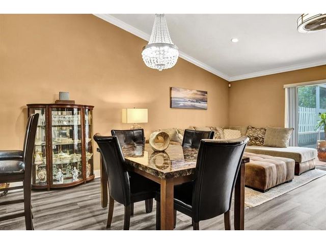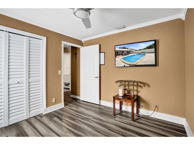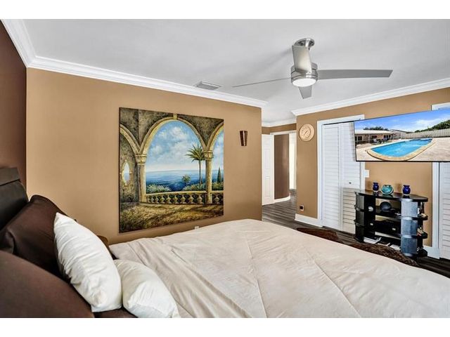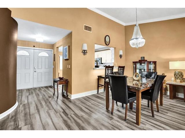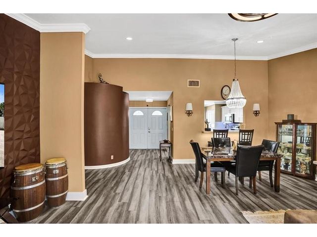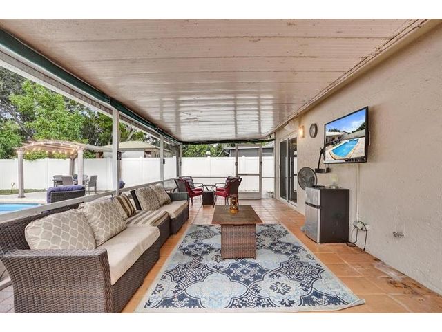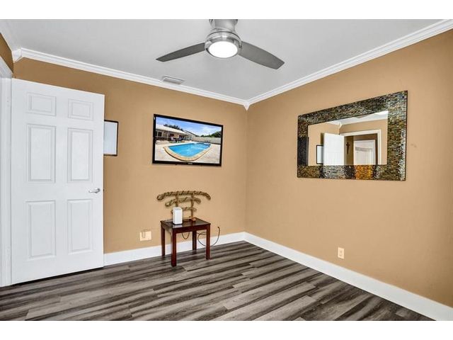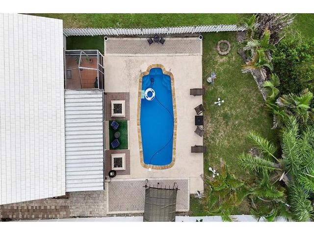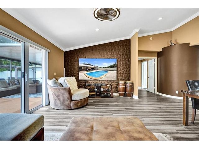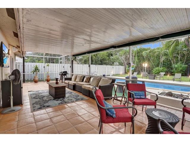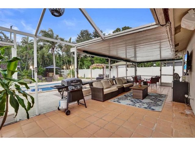 Welcome to your private paradise in Strawberry Lakes! This 3-bed, 2-bath, 2 car garage pool home is designed for entertaining. The backyard is the star, 1 of only 7 in the community with a sparkling pool, tiki hut, & plenty of space to host unforgettable gatherings. Enjoy a covered, screened patio, lush landscaping, & one of the largest lots in the neighborhood. Inside, you’ll find vaulted ceilings with crown molding, recessed lighting, luxury vinyl plank flooring, a modern kitchen & white granite counters, a skylight, & stainless appliances. All windows, doors & sliders are hurricane impact. The primary suite features a double door entrance, an upgraded bathroom with white and blue subway tile, a rain shower, & dual vanities. This home is move-in-ready, ready to host your first party!