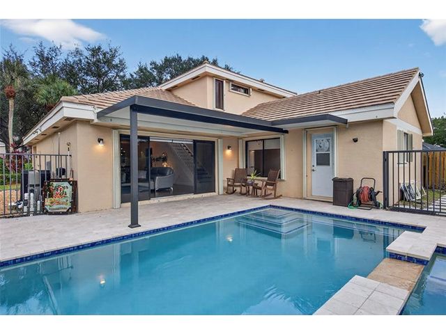 Well maintained, turn-key 4 bedrooms, 2.5 bathrooms, 2 car garage home; with one of the larger lots in desirable Cross Creek II community in Plantation. This beautiful home, located in a quiet cul-de-sac, offers salt water heated pool, new pump, with modern upgrades, installed in 2022. Fully fenced pool area framed with travertine patio. Primary bedroom on 1st floor, kitchen with stainless-steel appliances, washer and dryer, tons of natural light, accordion shutters through out the entire house, very spacious outdoor for entertaining and relaxing morning and afternoons, paver driveway. low HOA. Roof 2017. Close to parks, Sawgrass Mall, restaurants, groceries, major highways. A must see!!!
